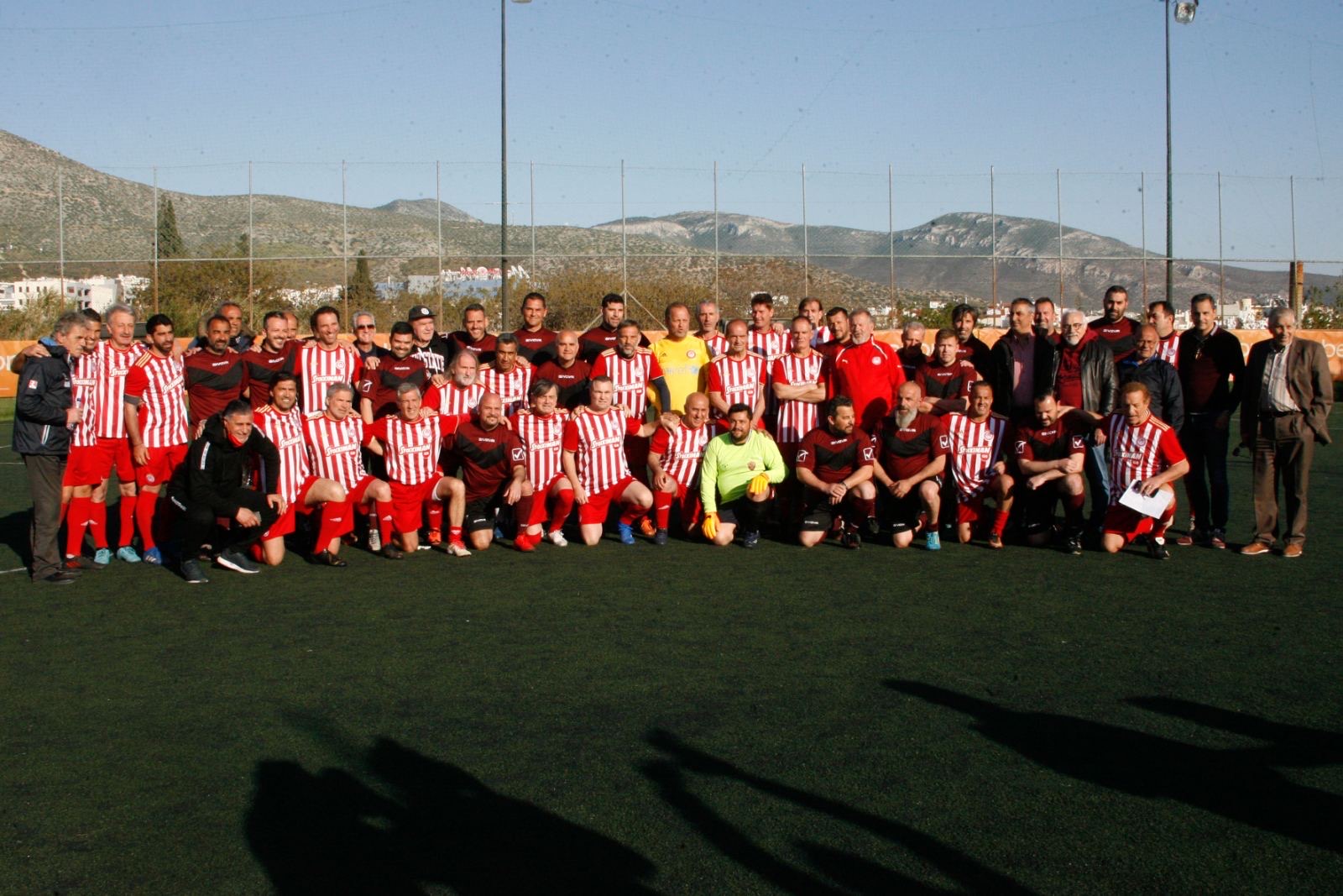 Πλήθος κόσμου χειροκρότησε τους βετεράνους του Ολυμπιακού στον αγώνα που διεξήχθη με τη μεικτή ομάδα του ALMA CLUB στις εγκαταστάσεις της σχολής του Ολυμπιακού στον Άλιμο.