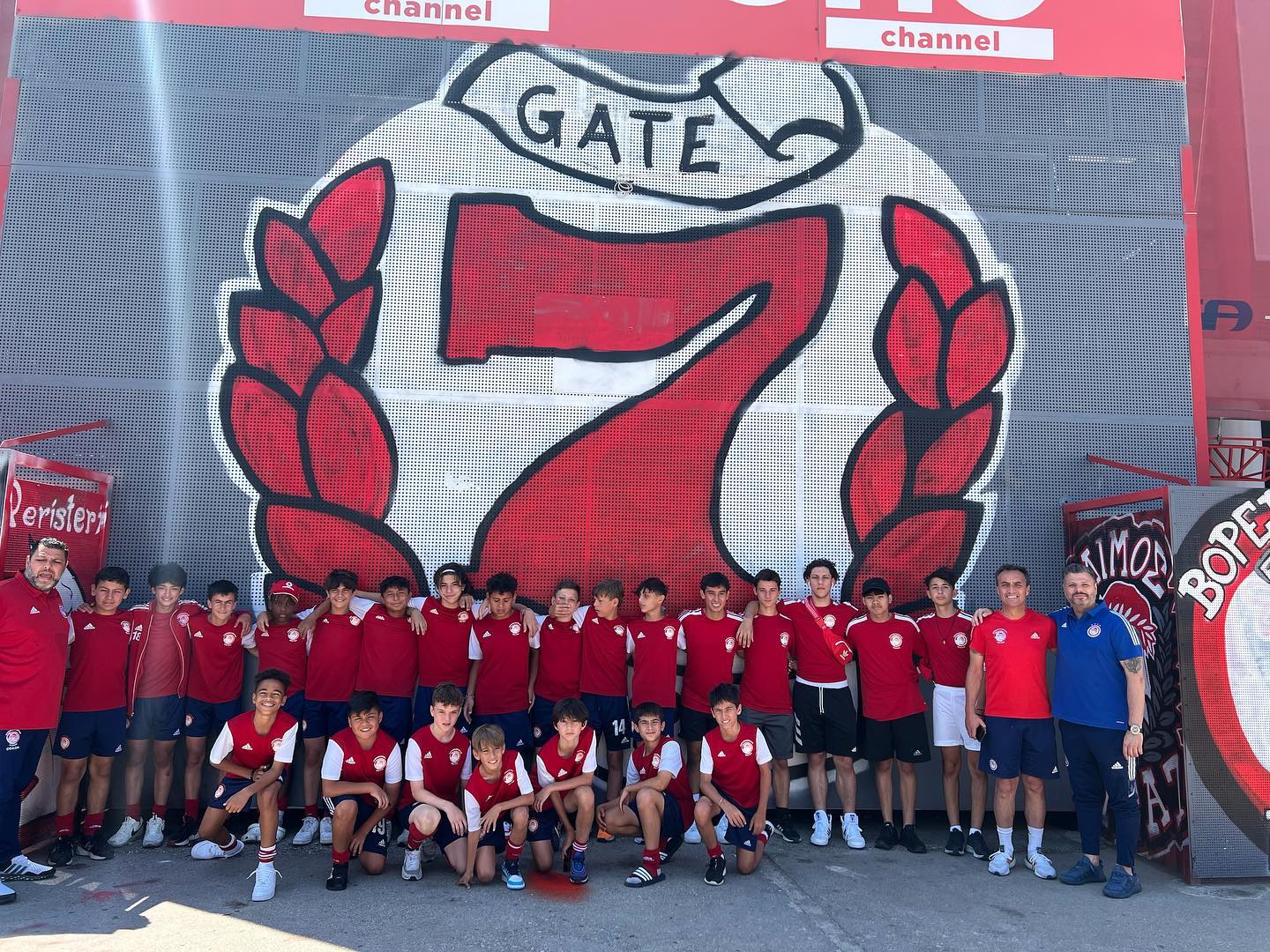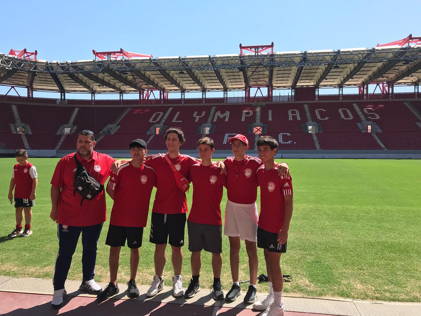 Εκτός από τη ξενάγηση στο Ρέντη, προπονητές, παιδιά και γονείς των σχολών Νέας Υόρκης και Κίτσενερ, είχαν την ευκαιρία να ξεναγηθούν και στο γήπεδο του Ολυμπιακού «Γ. Καραϊσκάκης». Εκεί όπου γύρισαν τους χώρους της πρώτης ομάδας, αποδυτήρια, γυμναστήριο, αγωνιστικό χώρο, κερκίδες και είχαν την ευκαιρία να μπουν για πρώτη φορά στον ναό της ομάδας μας!