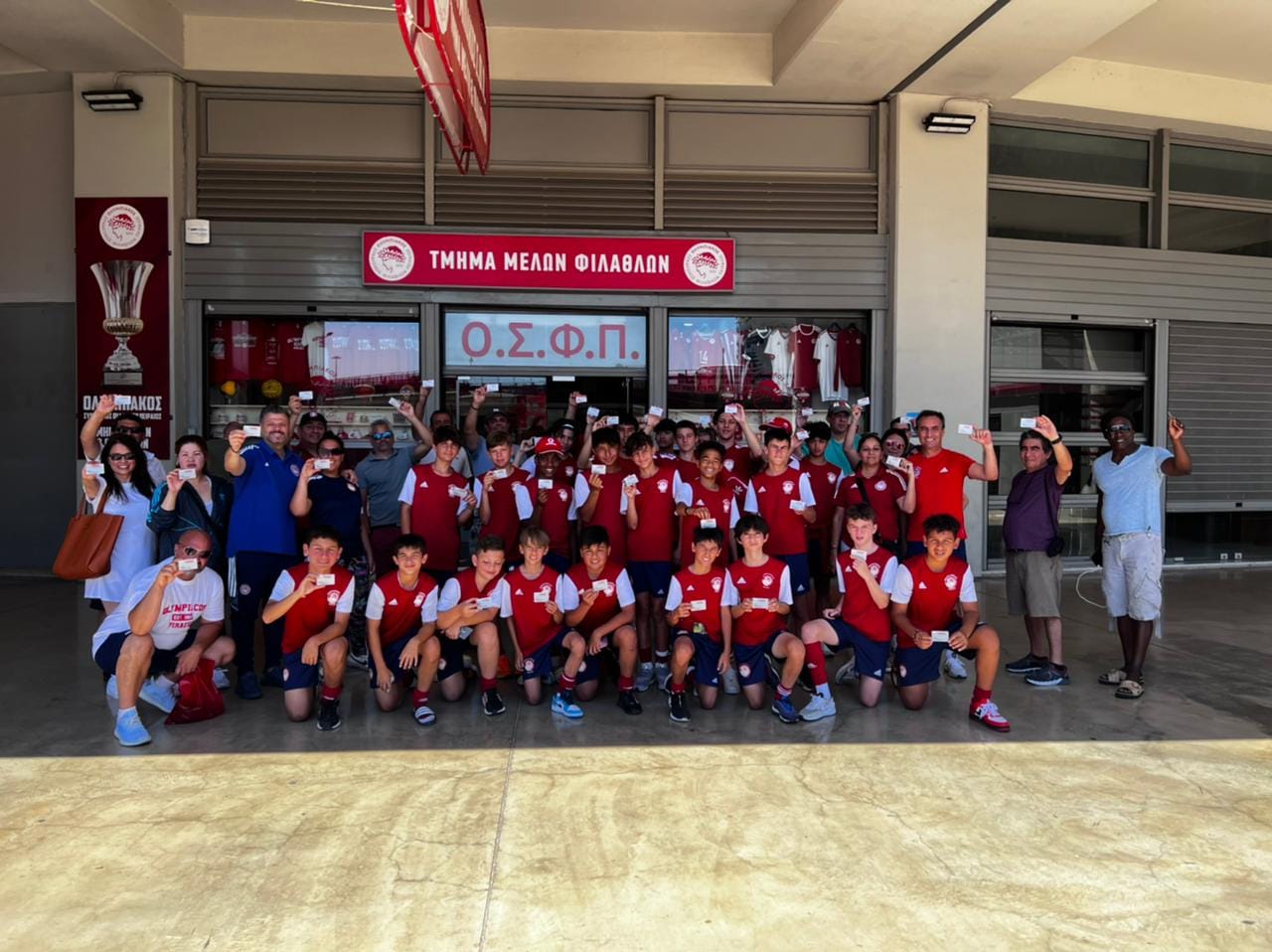 Παράλληλα, όλα τα μέλη των δύο αποστολών παρέλαβαν κάρτες φιλάθλου από το τμήμα μελών του Ερασιτέχνη Ολυμπιακού που βρίσκεται στο Καραϊσκάκη, στηρίζοντας έμπρακτα έτσι και τα τμήματα του Ολυμπιακού Σ.Φ.Π..