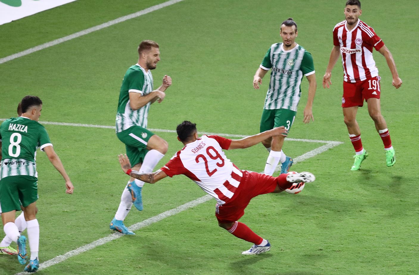 ΟΛΥΜΠΙΑΚΟΣ (Π. Μαρτίνς): Βατσλίκ, Βρσάλικο, Μανωλάς, Σισέ, Ρέαμπτσιουκ, Μ. Καμαρά (77′ Εμβιλά), Κανέ (62′ Ελ Αραμπί), Μπουχαλάκης (46′ Καρβάλιο), Ζινκερνάγκελ (62′ Κούντε), Μασούρας (68′ Βαλμπουενά), Τικίνιο.