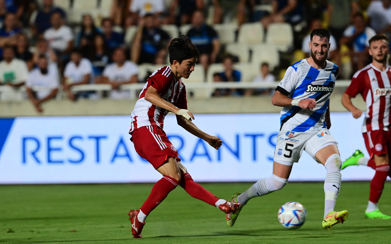 Στο πρώτο ημίχρονο ο Ολυμπιακός μπήκε καλά στο ματς και μάλιστα θα μπορούσε να είχε προηγηθεί, αν ήταν λίγο τυχερός στις ευκαιρίες που δημιούργησε. Μόλις στο 8ο λεπτό οι «ερυθρόλευκοι» απείλησαν για πρώτη φορά τους Κύπριους, όταν ο Εμβιλά έκανε το σουτ στην κίνηση έξω από τη μεγάλη περιοχή, όμως η μπάλα κατέληξε άουτ.