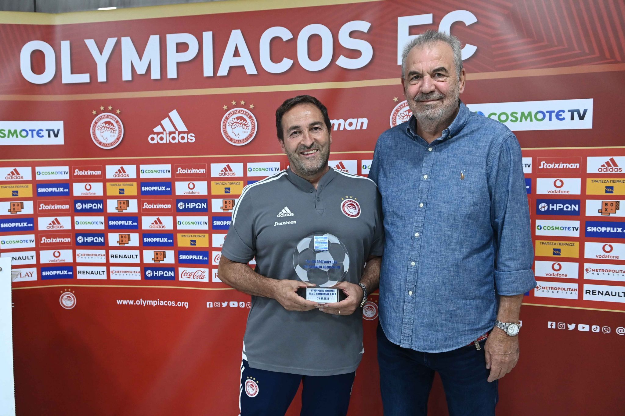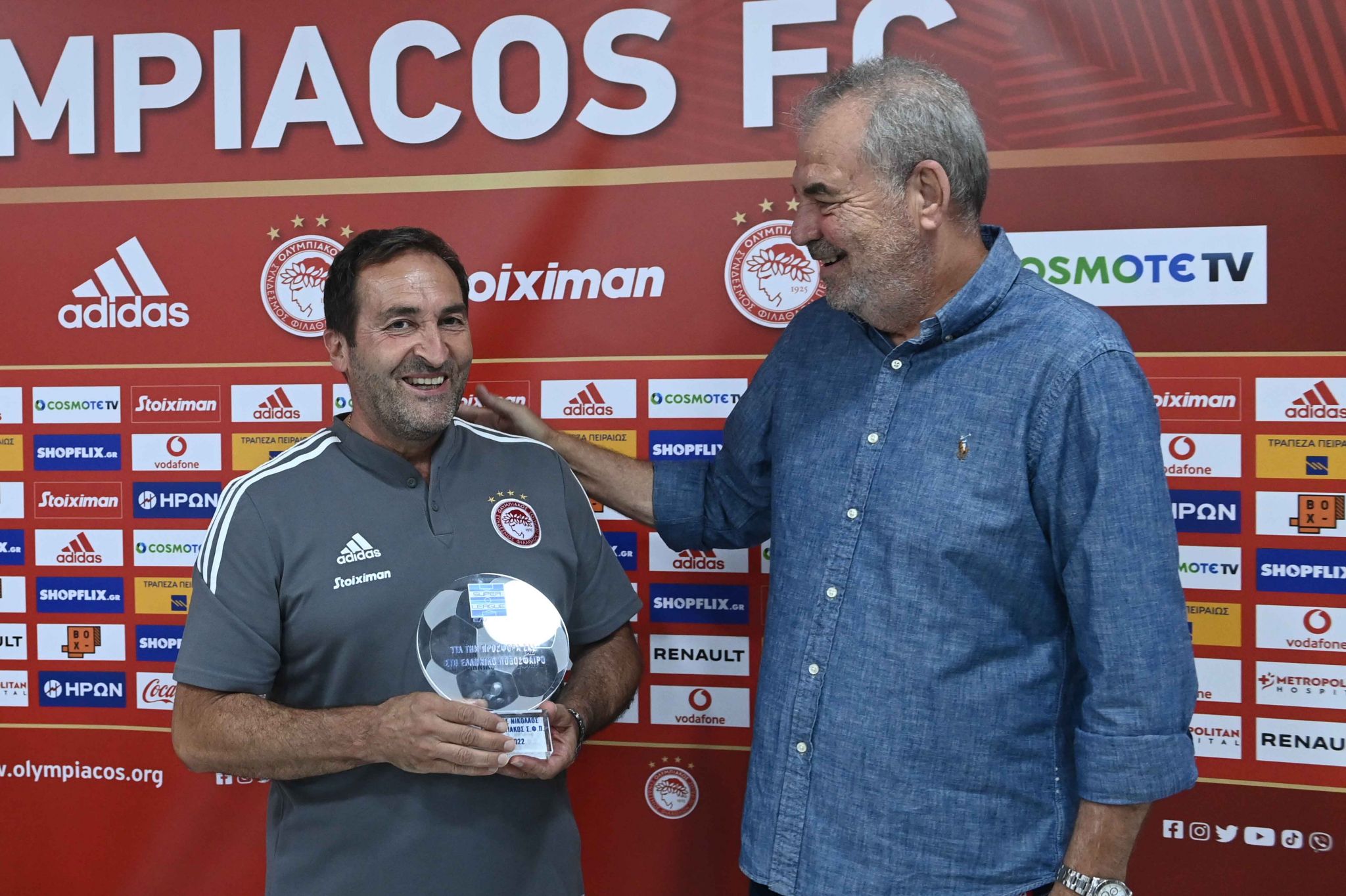 Το βραβείο στον κ. Λυκουρέση παρέδωσε ο Γ’ Αντιπρόεδρος και Διευθύνων Σύμβουλος της ΠΑΕ Ολυμπιακός, κ. Δημήτρης Αγραφιώτης.