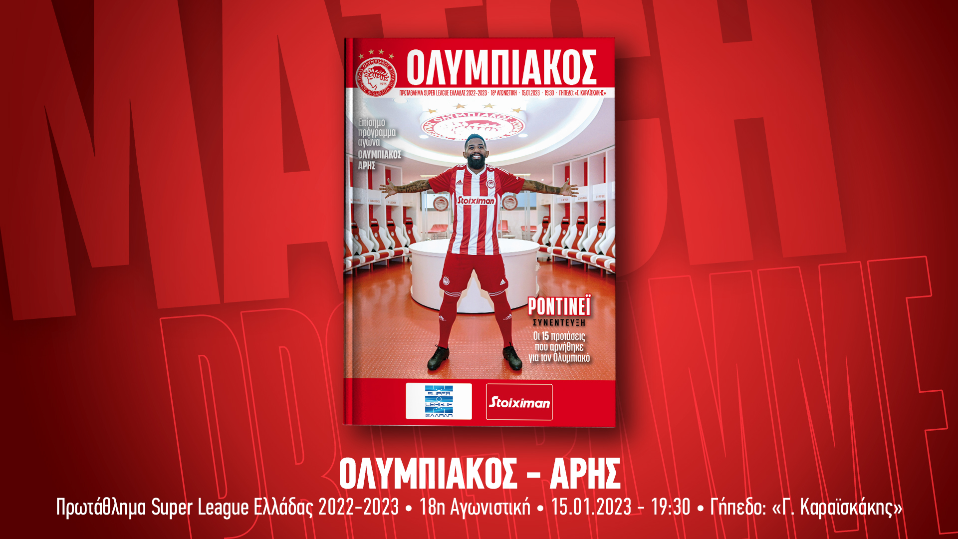Το match programme της 18ης αγωνιστικής, Ολυμπιακός - Άρης, για το πρωτάθλημα της Super League 2022/23.