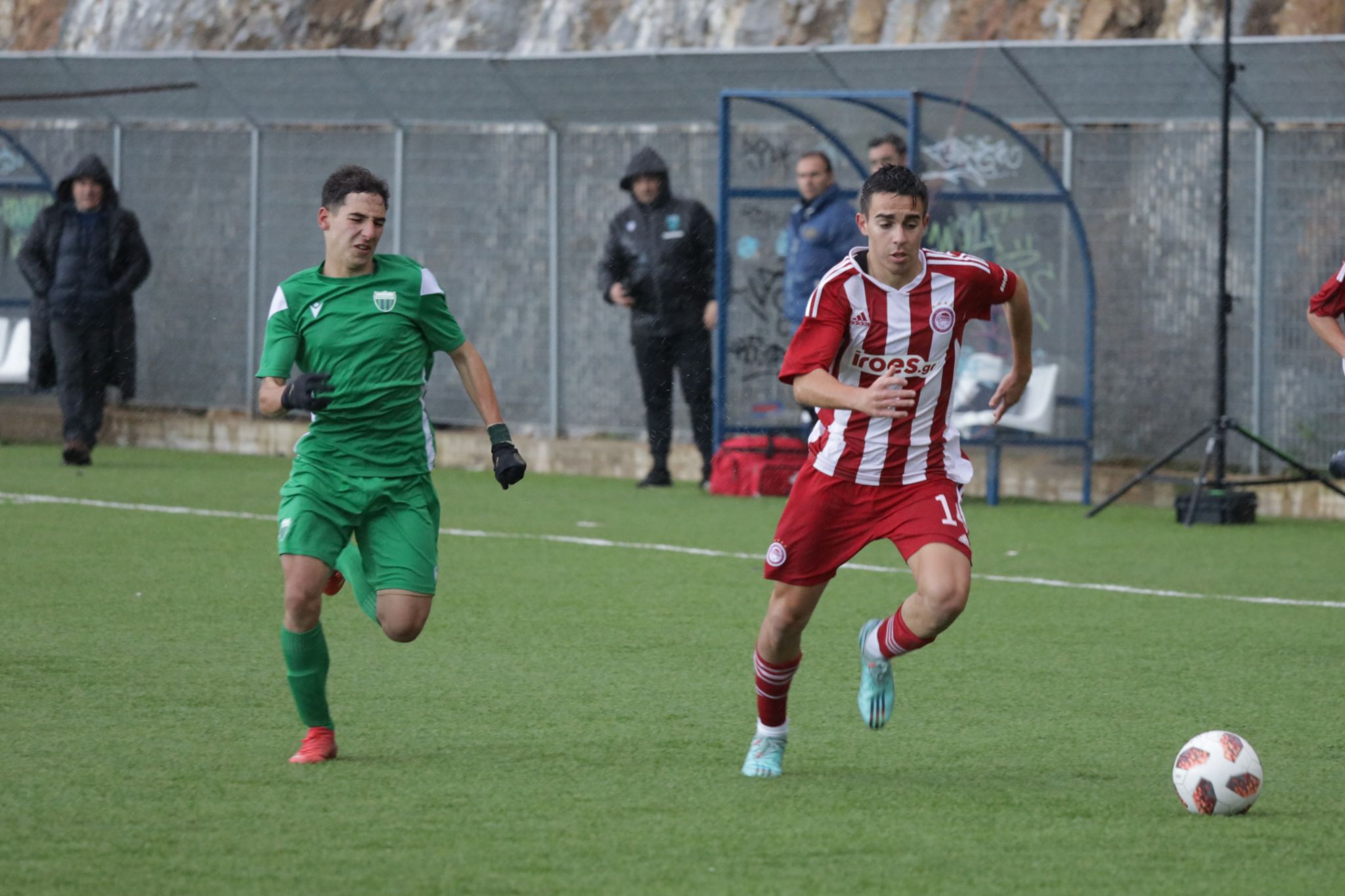 Στο δεύτερο ημίχρονο η ομάδα του Πειραιά συνέχισε να πιέζει ψηλά και με καλή κυκλοφορία δημιουργούσε φάσεις, παρά τις δύσκολες καιρικές συνθήκες στο γήπεδο της Λειβαδιάς. Στο 59′ ο Ολυμπιακός άνοιξε το σκορ, όταν μετά από εκτέλεση κόρνερ του Τουφάκη, ο Παναγάκος έδωσε την ασίστ στον Φίλη και εκείνος έκανε το 0-1.