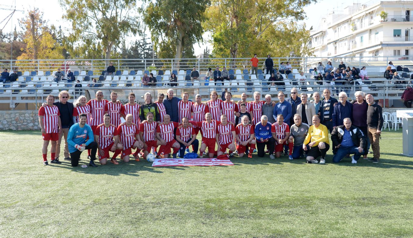 Οι Βετεράνοι ποδοσφαιριστές οι οποίοι έφτασαν στο γήπεδο με πούλμαν της ΠΑΕ Ολυμπιακός, αγωνίστηκαν απέναντι στους Έλληνες ηθοποιούς και νίκησαν με 4-0. Τα γκολ σημείωσαν οι Καρασαββίδης, Παχατουρίδης, Καλύκας και Χαντζίδης.