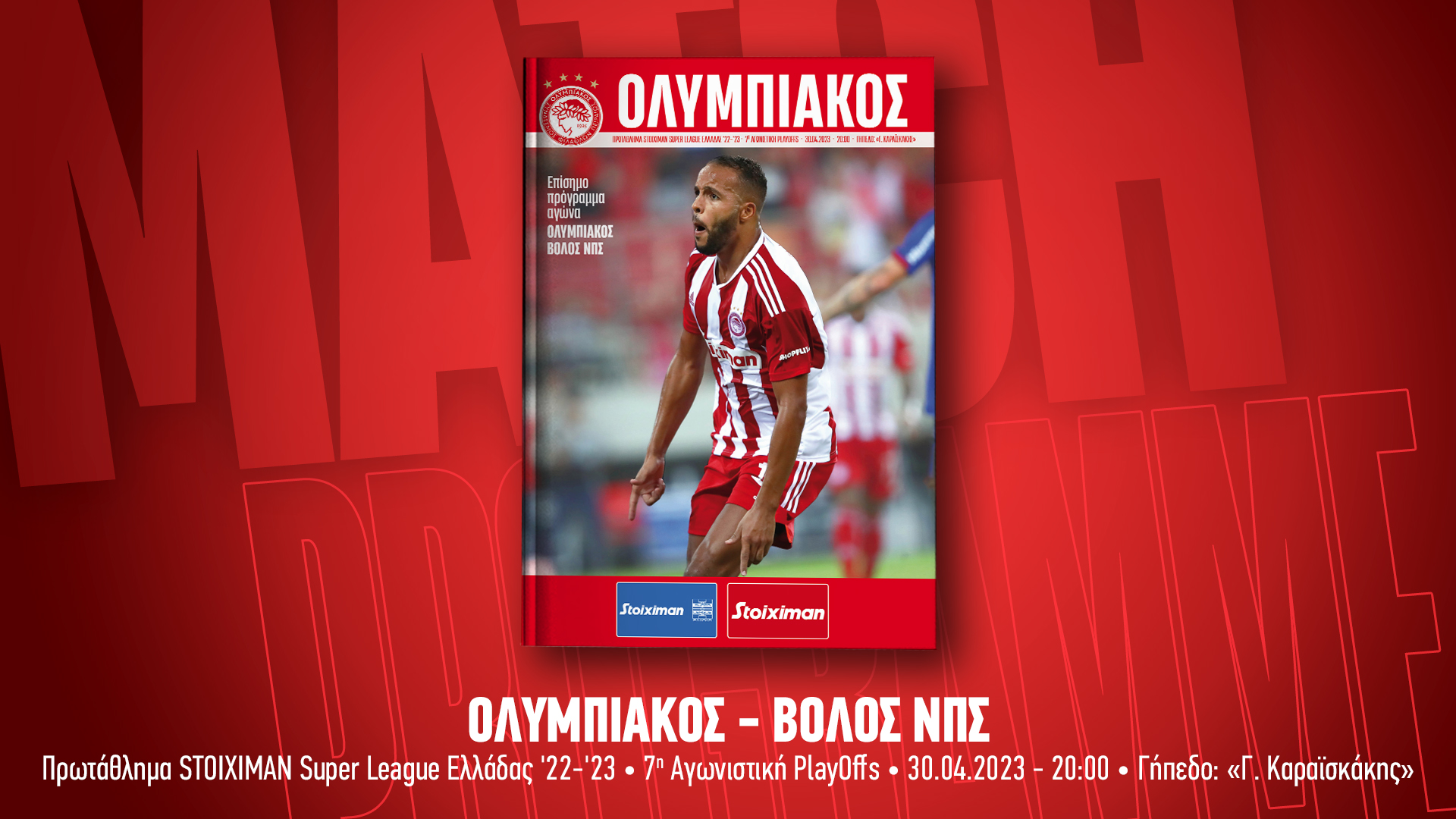 Το match programme της αναμέτρησης Ολυμπιακός – Βόλος, για την 7η αγωνιστική των Playoffs του πρωταθλήματος της Stoiximan Super League.