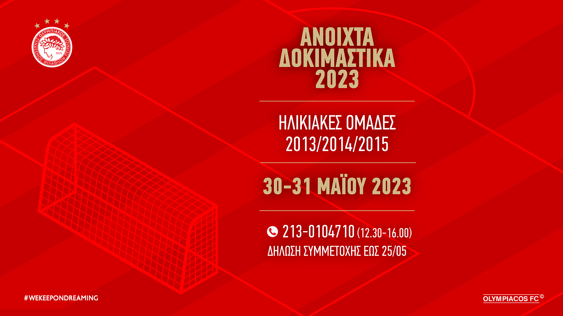 Να σημειωθεί πως 1 Ιουνίου θα ακολουθήσει δοκιμαστικό μόνο για παιδιά των σχολών του δικτύου ποδοσφαίρου του Ολυμπιακού.
