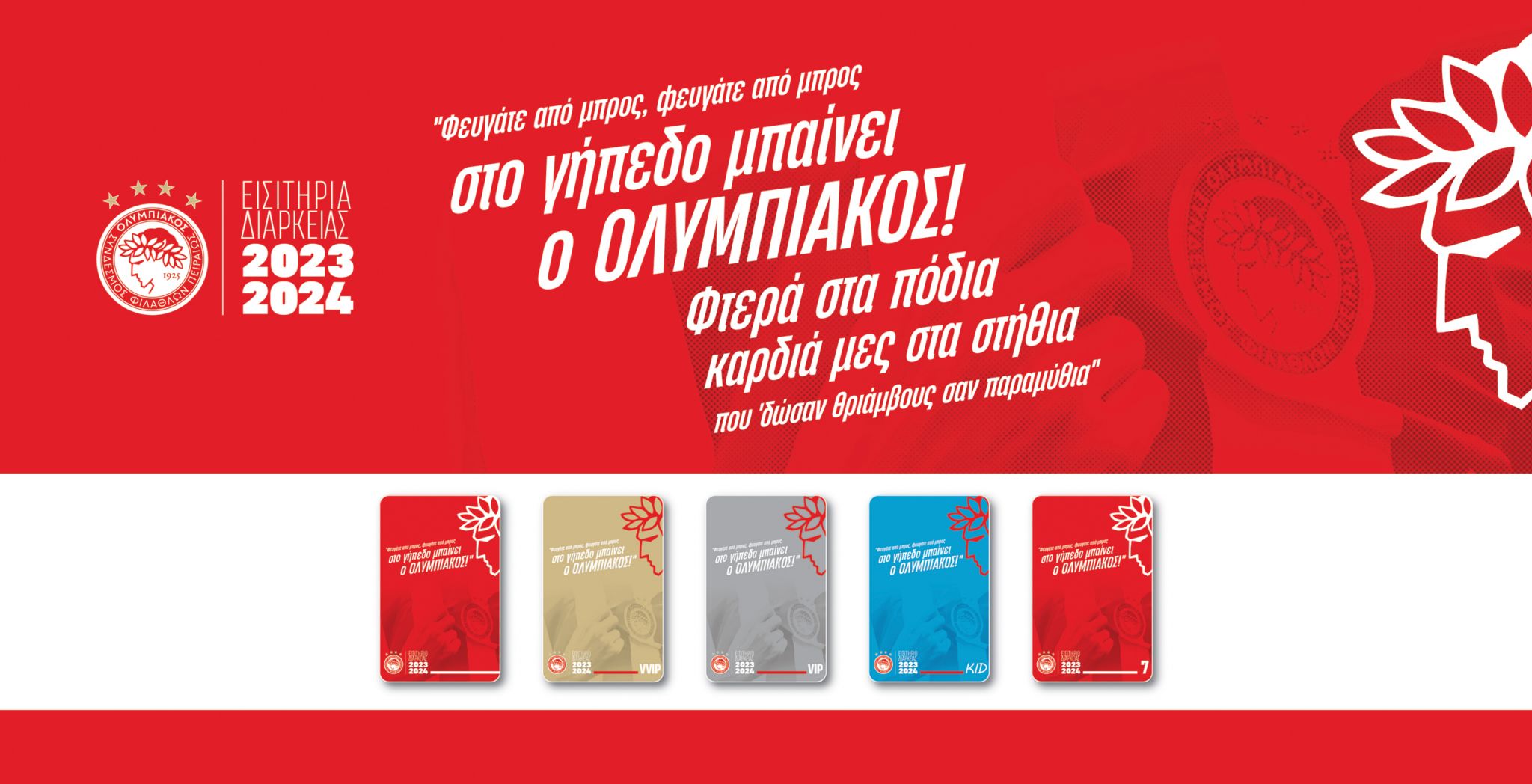 Η διάθεση των εισιτηρίων διαρκείας για τη σεζόν 2023-24, θα ξεκινήσει από την Παρασκευή (26/05) στο διαδίκτυο και από την Πέμπτη (01/06) στα εκδοτήρια του σταδίου «Γ. Καραϊσκάκης» στη θύρα 25.