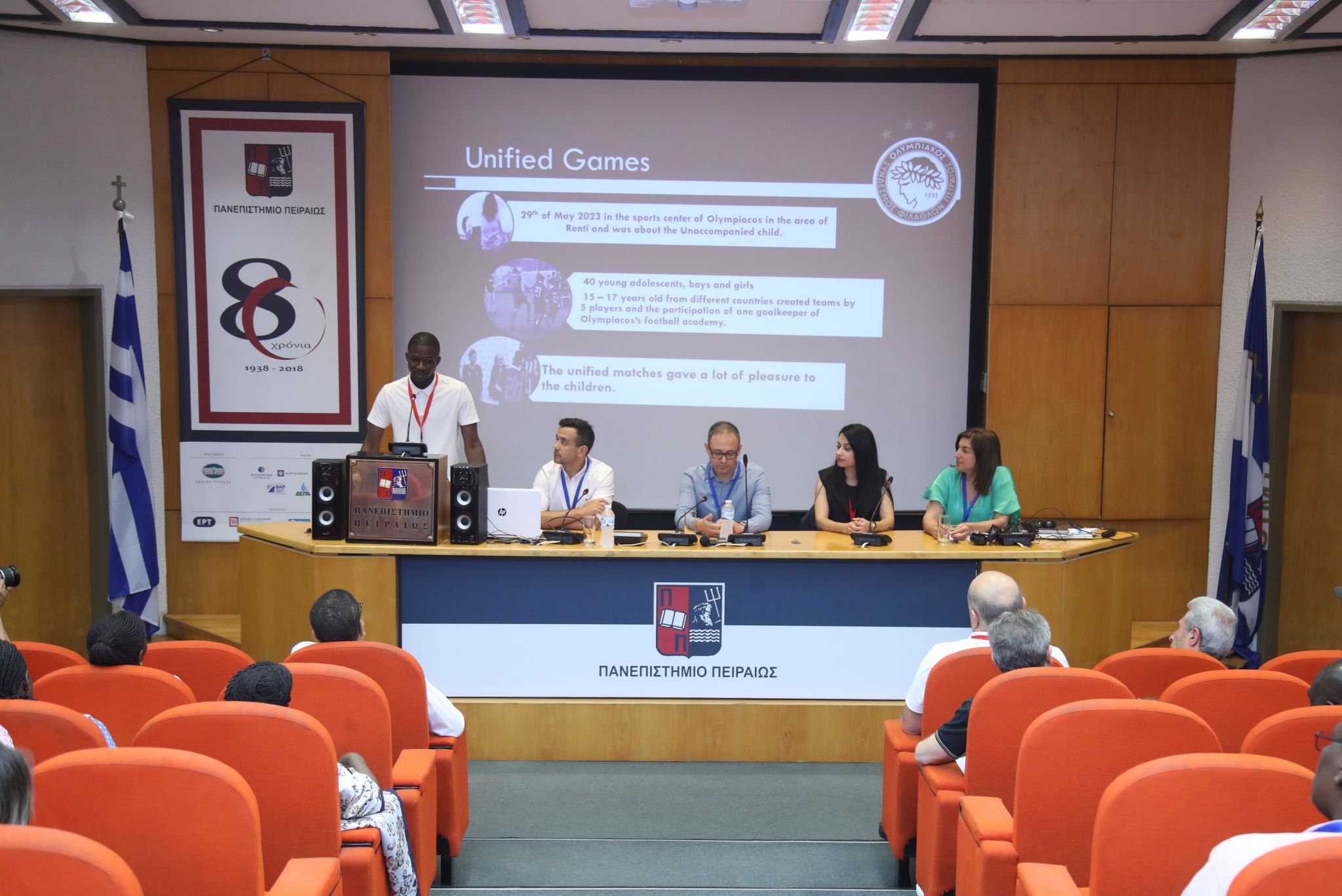 Την ΠΑΕ Ολυμπιακός, εκπροσώπησε ο διευθυντής ΕΚΕ, Νίκος Γαβαλάς, ο οποίος αναφέρθηκε στην υπηρεσία της ακουστικής περιγραφής που προσφέρει ο Ολυμπιακός σε ανθρώπους με οπτική αναπηρία σε όλους τους εντός έδρας αγώνες στο στάδιο «Γ. Καραϊσκάκης», σε συνεργασία με το Πάντειο Πανεπιστήμιο πολιτικών και κοινωνικών επιστημών. Όπως επίσης μίλησε και για το τουρνουά ποδοσφαίρου για ασυνόδευτα ανήλικα, το οποίο πραγματοποιήθηκε στο Ρέντη, σε συνεργασία με τη Γενική Γραμματεία Προστασίας Ασυνόδευτων Ανηλίκων, ενώ έγινε αναφορά και στις κοινές δράσεις που επεξεργάζονται η ΠΑΕ Ολυμπιακός και το Πανεπιστήμιο Πειραιώς.