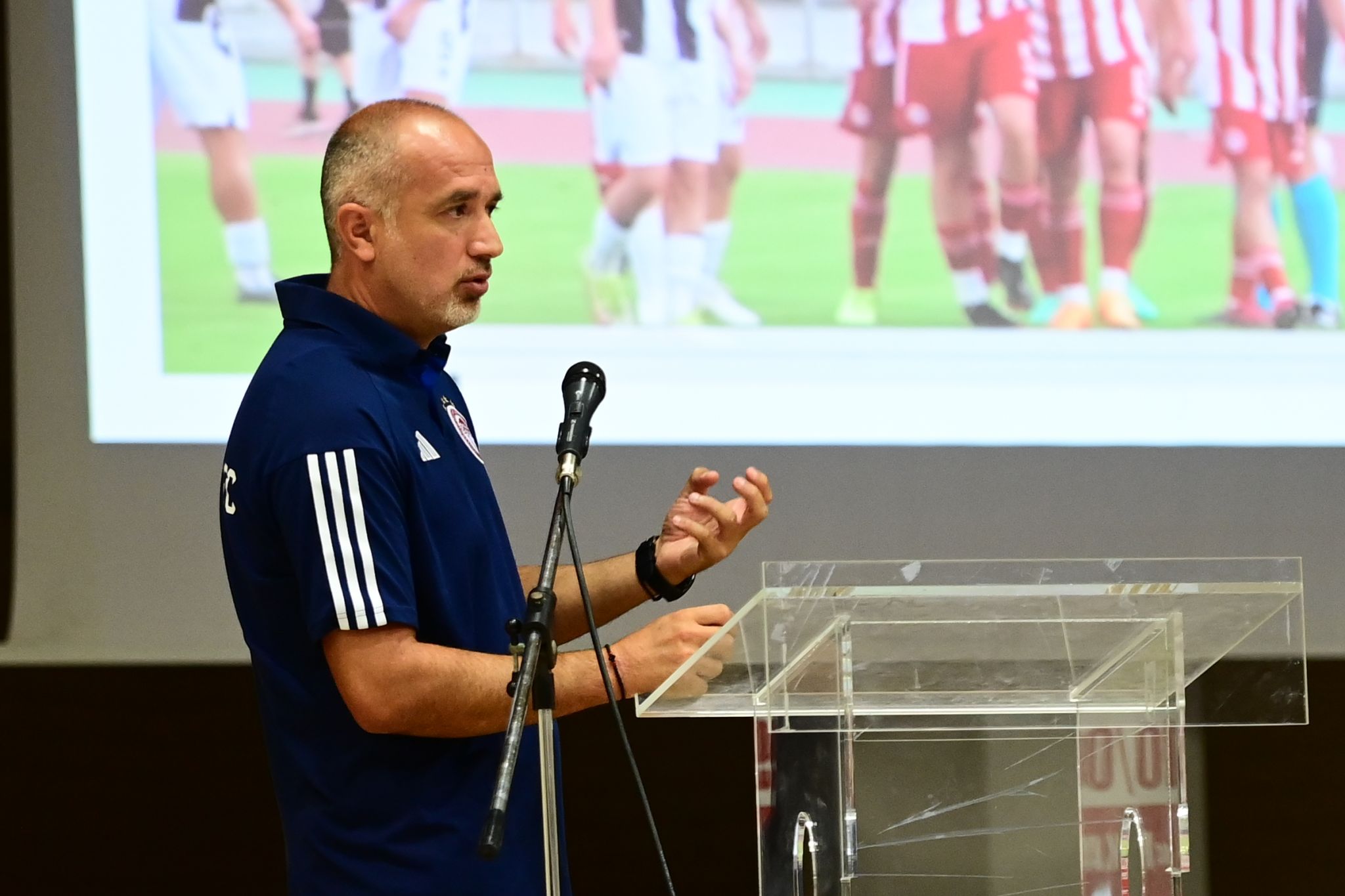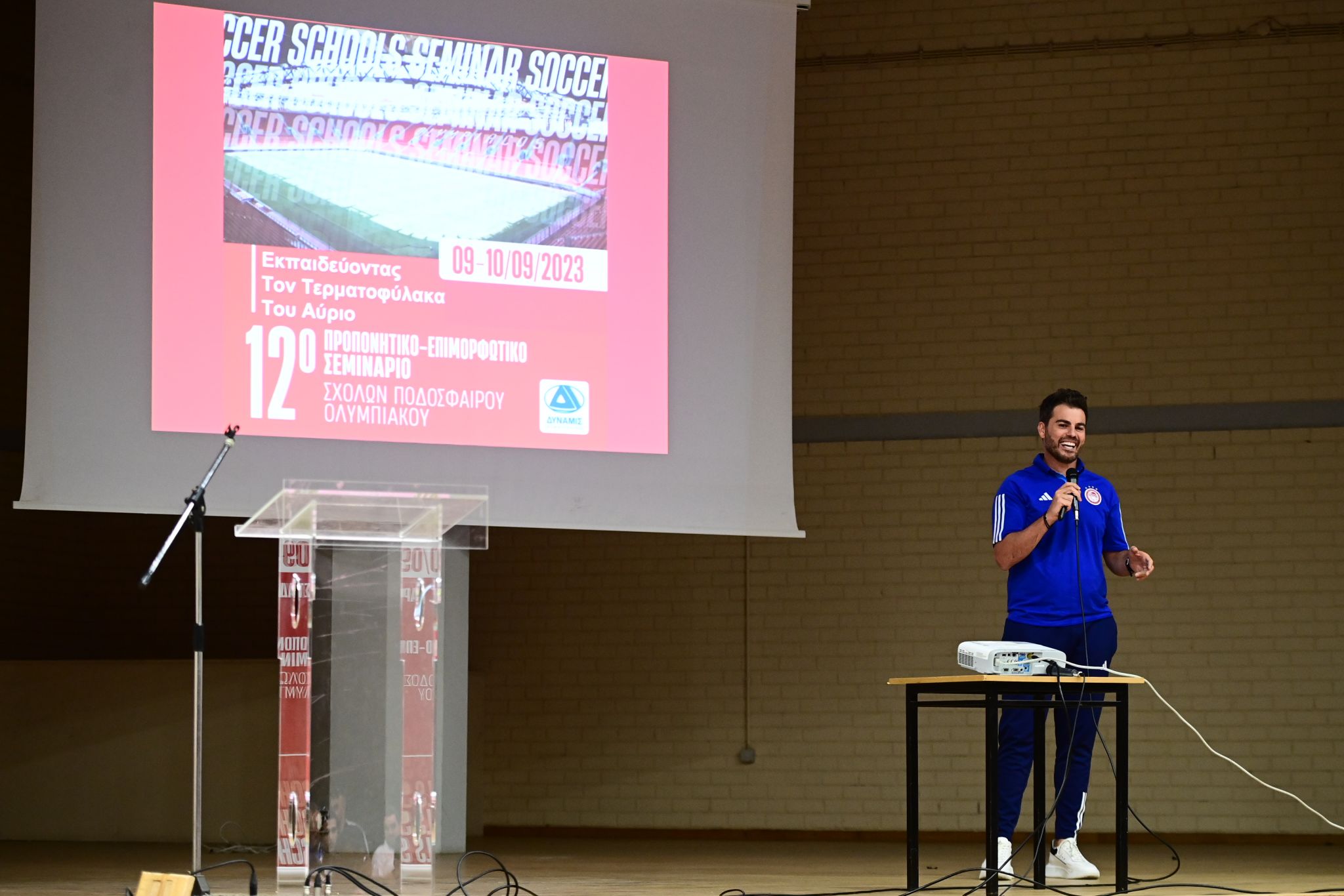 Αρχικά το σεμινάριο ξεκίνησε με ομιλία και παρουσίαση από τον Διευθυντή του Δικτύου Σχολών του Ολυμπιακού κ. Βασίλη Νάνο και του στελέχους τμήματος Σχολών, Χρήστο Σολωμό, οι οποίοι καλωσόρισαν όλους τους παρευρισκόμενους και ευχαρίστησαν τον Πρόεδρο και ηγέτη του Συλλόγου, κ. Βαγγέλη Μαρινάκη για τη στήριξη του στις Σχολές και στην Ακαδημία του Θρύλου.
