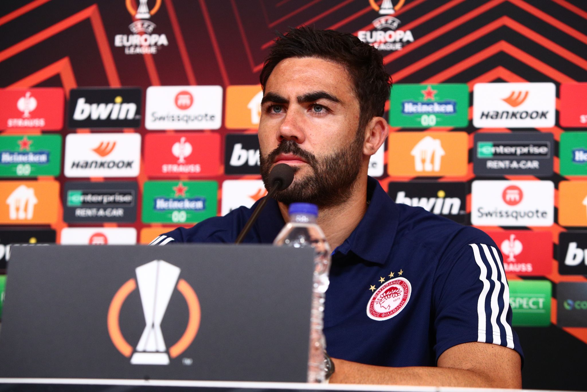 Όλα τα στοιχεία που μου δώσατε είναι αλήθεια, αλλά όλα αυτά ανήκουν στο παρελθόν, τώρα ξεκινά μία άλλη διοργάνωση και είναι σα να παίζω για πρώτη φορά ξανά στο Europa League. Είμαι με μία καινούργια ομάδα και θα ξεκινήσω με τον ίδιο στόχο και τη θέληση όπως και τότε και σίγουρα θα έχω την ίδια δίψα και φιλοδοξία. Θυμάμαι τότε τα ματς με τη Φράιμπουργκ, τη δυσκολία των αγώνων και ξέρω καλά πόσο δύσκολο είναι να παίζεις κόντρα σε γερμανικές ομάδες. Τώρα είναι άλλα παιχνίδια και πάμε με φιλοδοξία για το θετικό αποτέλεσμα. Ξέρουμε πως τα πράγματα δε θα είναι εύκολα, αλλά εμείς όσο περνά ο καιρός θα βελτιωνόμαστε και τώρα έχουμε προετοιμαστεί καλά και θα προσπαθήσουμε να πάρουμε ένα θετικό αποτέλεσμα.
