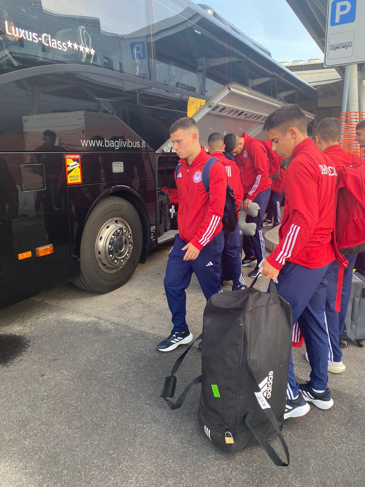 Στην Ιταλία βρίσκεται από τα ξημερώματα της Τρίτης (24/10) η αποστολή της ομάδας Νέων του Ολυμπιακού για το δεύτερο αγώνα εναντίον της Λέτσε για το UEFA Youth League, την Τετάρτη (25/10, 21:30).