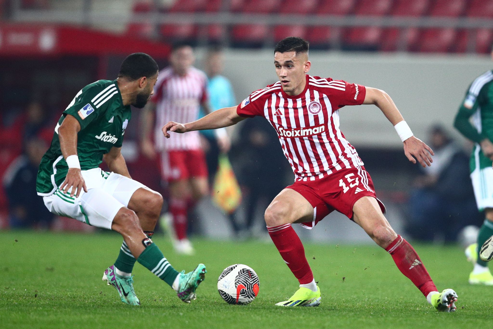 Στο δεύτερο ημίχρονο ο Ολυμπιακός ήταν καλύτερος και δημιούργησε επικίνδυνες καταστάσεις στην εστία των «πρασίνων». Στο 48′ ο Φορτούνης «γέμισε» από εκτέλεση φάουλ, ο Ντόη πήρε την κεφαλιά και έδιωξε από κοντά ο Λοντίγκιν. Στο 56′ ο Αλεξανδρόπουλος μετά από ατομική ενέργεια έκανε το σουτ με την μπάλα να πηγαίνει πάνω από το οριζόντιο δοκάρι και τρία λεπτά μετά, 59′, ο Φορτούνης έκανε το σουτ με το αριστερό μέσα από την περιοχή και έδιωξε ο Λοντίγκιν σε κόρνερ.