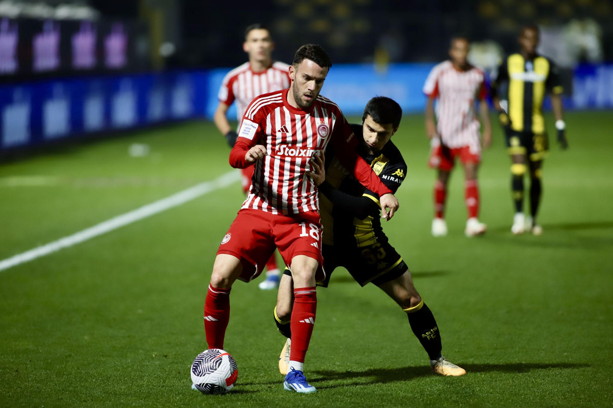 ΟΛΥΜΠΙΑΚΟΣ (Κ. Καρβαλιάλ): Πασχαλάκης, Ροντινέι, Ντόη (85′ Μπιανκόν), Ρέτσος, Κίνι, Έσε, Καρβάλιο, Μασούρας, Αλεξανδρόπουλος (78′ Καμαρά), Μάρτινς (64′ Ποντένσε), Ναβάρο (85′ Φορτούνης).