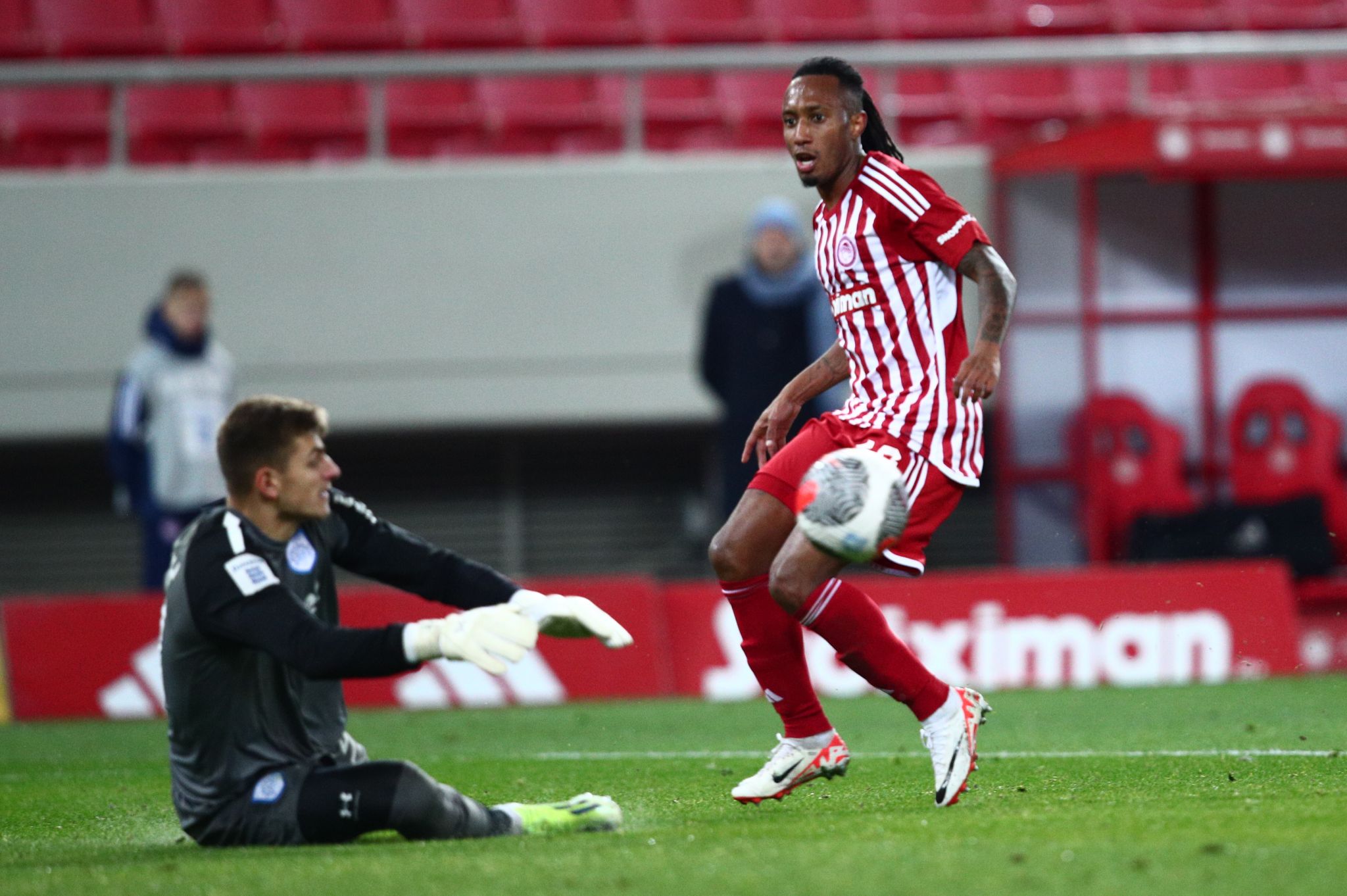 Στο δεύτερο ημίχρονο ο Ολυμπιακός στην πρώτη του καλή ευκαιρία πήρε και το προβάδισμα. Συγκεκριμένα, ο Ντόη στο 57′ έκανε το σουτ αρκετά μέτρα μακριά από τη μεγάλη περιοχή και η μπάλα κατέληξε στα δίχτυα του Αθανασίου για το 1-0.
