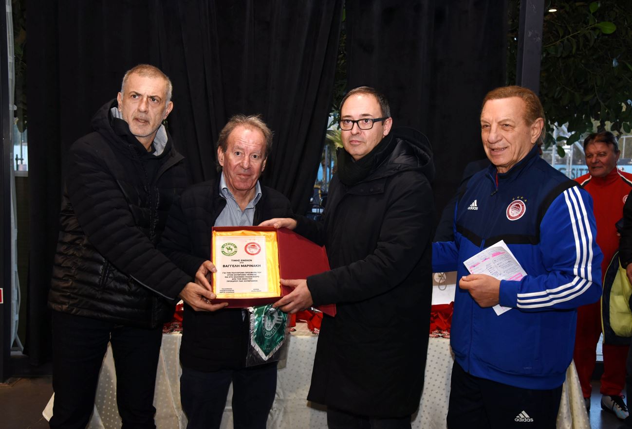 Ο πρόεδρος των Βετεράνων Ακρίτα Πάφου, Νίκος Πάσπας, παρέδωσε τιμητική πλακέτα για τον πρόεδρο της ΠΑΕ Ολυμπιακός Βαγγέλη Μαρινάκη, ενώ παράλληλα βράβευσαν τον πρόεδρο των Βετεράνων Ολυμπιακού Γιάννη Γκαϊτατζή, όπως και τους Γιάννη Μώραλη, Νίκο Γαβαλά και τον πρέσβη της Κύπρου. Από την πλευρά τους οι «ερυθρόλευκοι» βράβευσαν τον πρόεδρο Βετεράνων της ομάδας Κύπρου Νίκο Πάσπα και τον κοινοτάρχη Νικόλα Λιοσίδη, αλλά και την ομάδα Ακρίτα Πάφου.