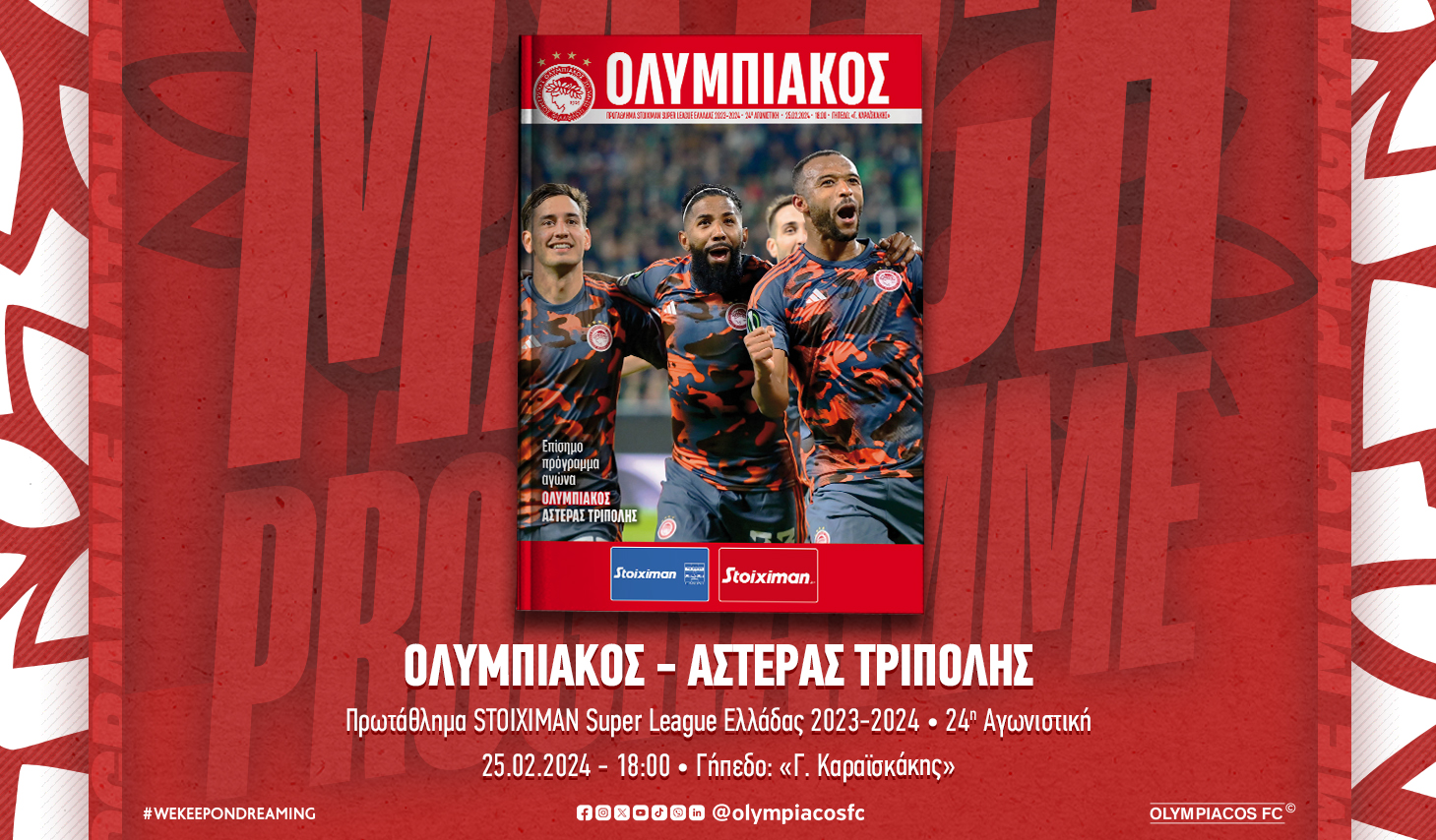 Το Match Programme του αγώνα Ολυμπιακός – Αστέρας Τρίπολης