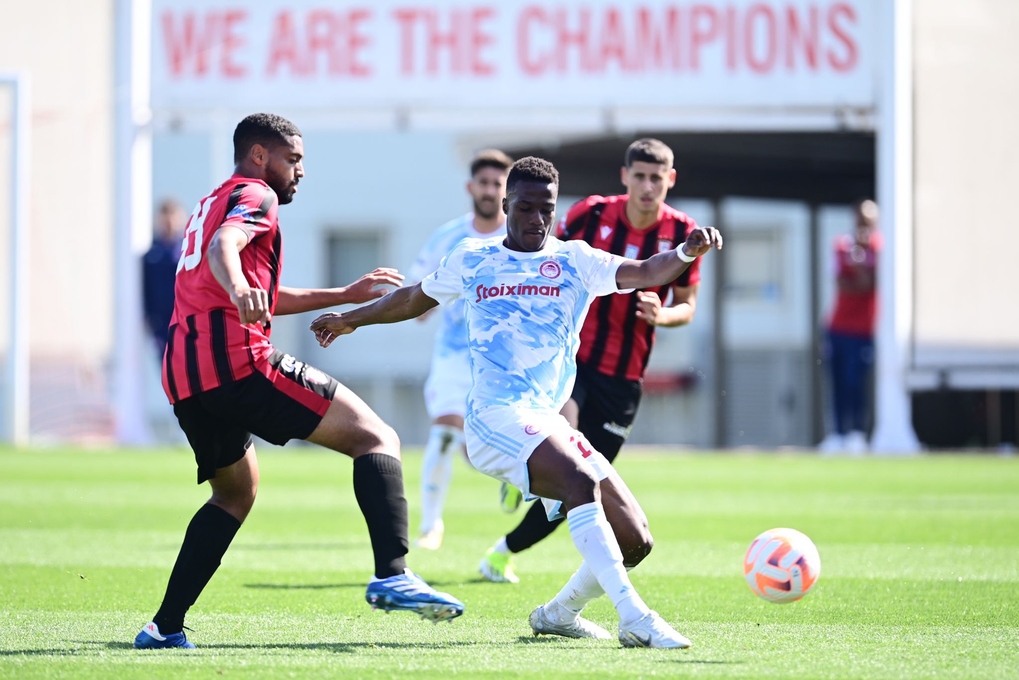 Στο 45′ οι «ερυθρόλευκοι» είχαν μία ακόμη μεγάλη ευκαιρία, όταν ο Μπα έδωσε στα δεξιά για τον Πινακά ο οποίος ήταν μόνος του μέσα στην περιοχή σε πλάγια θέση και το πλασέ του πήγε άουτ.