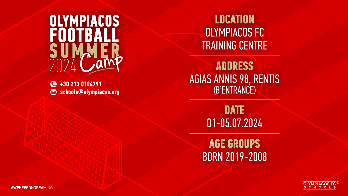 Για ένα ακόμη καλοκαίρι ο θεσμός της ακαδημίας, το Summer Camp, είναι και πάλι εδώ και το προπονητικό κέντρο στο Ρέντη είναι έτοιμο να υποδεχτεί ξανά εκατοντάδες παιδιά απ’ όλο τον κόσμο! Μία εκδήλωση η οποία έχει ξεκινήσει από το καλοκαίρι του 2000 και πλέον θα διεξαχθεί για 23η χρονιά. Από το 2000 μέχρι και το περασμένο καλοκαίρι έχουν λάβει μέρος στο Summer Camp των «ερυθρόλευκων» πάνω από 20.000 παιδιά, αριθμός που αναδεικνύει τη δουλειά που πραγματοποιείται, όπως και την εμπιστοσύνη χιλιάδων γονιών για την ποδοσφαιρική και όχι μόνο εκπαίδευση των παιδιών τους.