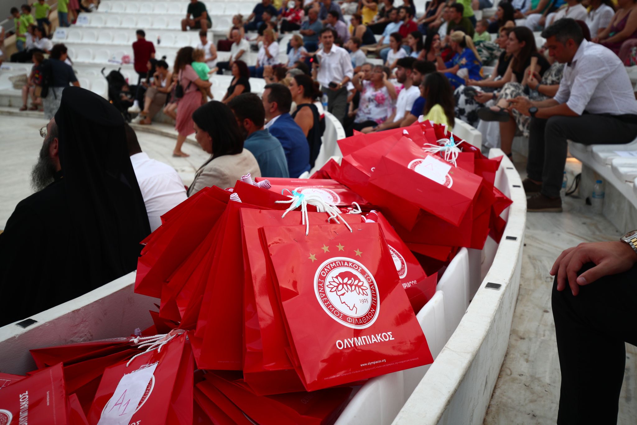 Στο πλαίσιο της εκδήλωσης δόθηκαν εκατοντάδες «ερυθρόλευκα» δώρα, προσφορά της ΠΑΕ Ολυμπιακός, στα παιδιά των σχολείων. Η ερυθρόλευκη ΠΑΕ συνέχισε έτσι την κοινωνική της δράση προσφέροντας και συμβάλλοντας ξανά στο μεγάλο έργο της Μητρόπολης Πειραιά.