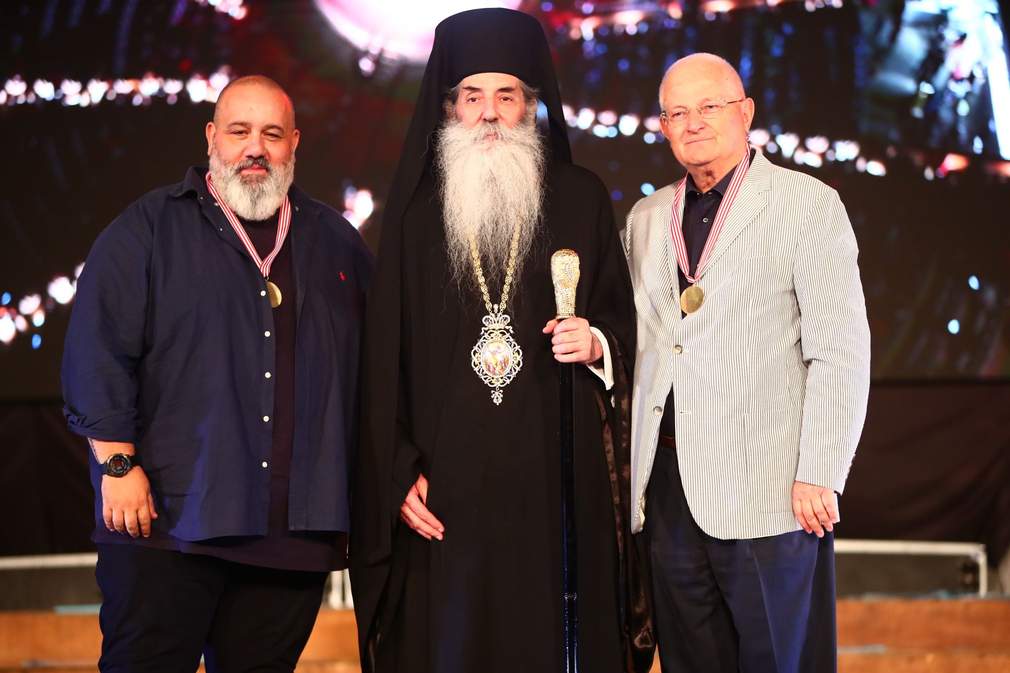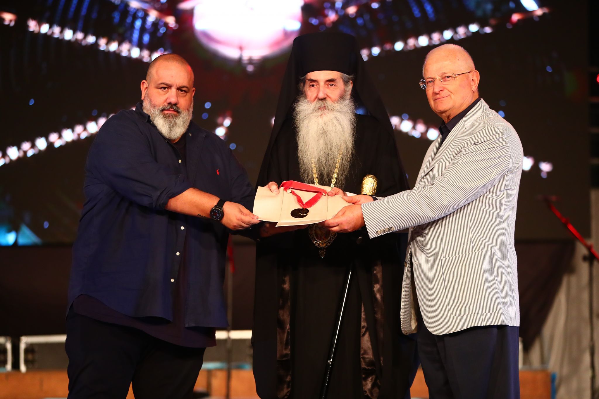 Παράλληλα, ο Μητροπολίτης Πειραιά Σεραφείμ πρόσφερε αναμνηστικά δώρα στους κ.κ. Κώστα Καραπαπά και Βασίλη Βασιλειάδη, τιμώντας τον πρόεδρο της ΠΑΕ Ολυμπιακός, Βαγγέλη Μαρινάκη.