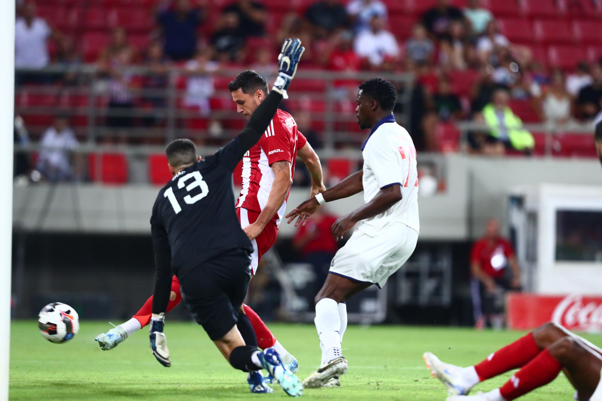 Οι «ερυθρόλευκοι» αμέσως αντέδρασαν και πίεσαν τον αντίπαλό τους. Στο 76′ ο Μασούρας έκανε το σουτ έξω από την περιοχή με τον τερματοφύλακα να μπλοκάρει σταθερά, ενώ στην αμέσως επόμενη φάση στο 77′ ο Στάμενιτς έκανε το σουτ επίσης έξω από την περιοχή, ο Μπαραγκάν έδιωξε με την μπάλα να κοντράρει στον Ελ Κααμπί και ο Γιάρεμτσουκ από κοντά διαμόρφωσε το τελικό 2-1 της αναμέτρησης.