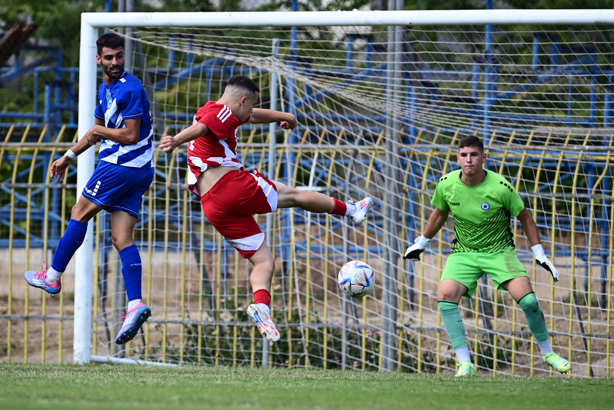 Οι «ερυθρόλευκοι» αν και ξεκίνησαν λίγο «μουδιασμένα» το παιχνίδι, κατάφεραν να βρουν γρήγορα λύσεις και να δημιουργήσουν αρκετές ευκαιρίες προς την αντίπαλη εστία, όμως τόσο το τακουνάκι του Παναγάκου στο 18′ όσο και το σουτ του Μπακούλα στο 30′ πέρασαν άουτ.