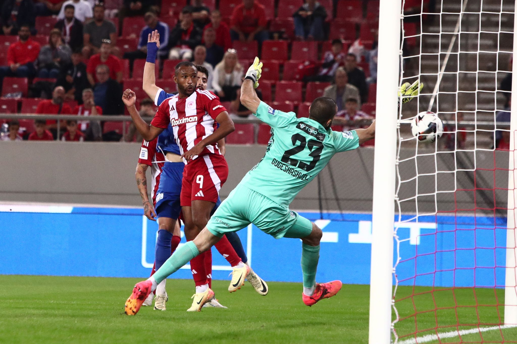 Στη συνέχεια ο Ολυμπιακός είχε καλές στιγμές για ένα δεύτερο γκολ, όπως στο 25′ ο Μαρτίνς γύρισε την μπάλα από τα δεξιά, ο Τσικίνιο έκανε το κοντρόλ μέσα στην περιοχή και απευθείας το σουτ με τον Γκουγκεσασβίλι να διώχνει. Λίγο πριν το τέλος του ημιχρόνου οι «ερυθρόλευκοι» είχαν δύο σερί ευκαιρίες. Η πρώτη στο 45+1′ όταν ο Κοστίνια έκανε το σουτ έξω από την περιοχή και η μπάλα σταμάτησε στο δοκάρι, ενώ στο αμέσως επόμενο λεπτό ο Μαρτίνς μπήκε στη μεγάλη περιοχή και σούταρε από τα δεξιά χωρίς όμως τον επιθυμητό στόχο.