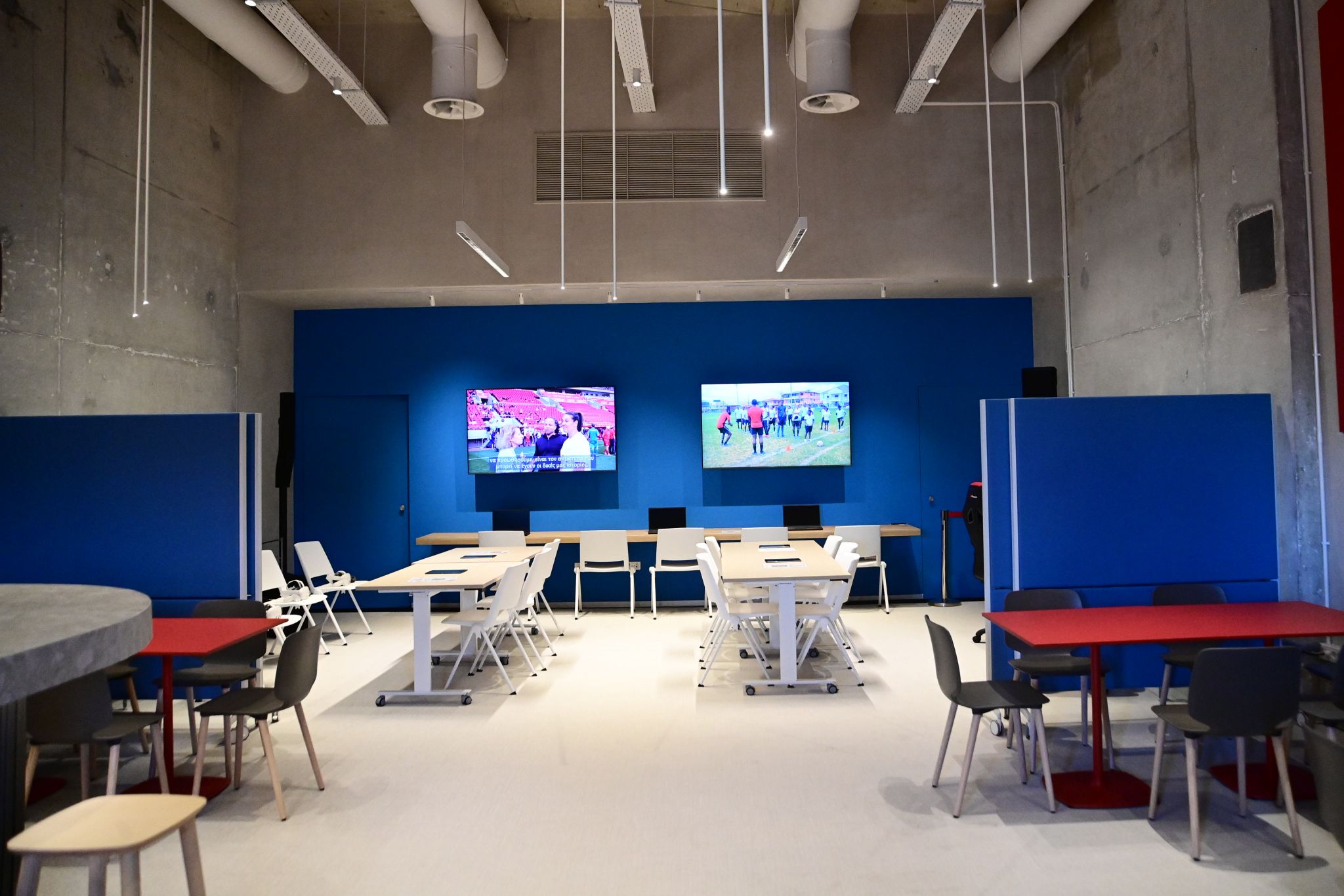 Ο νέος αυτός χώρος αποτελεί την επέκταση της Αμερικανικής Γωνιάς Πειραιά – μιας ιδιαίτερα επιτυχημένης πρωτοβουλίας που λειτουργεί στη Δημοτική Βιβλιοθήκη Πειραιά εδώ και επτά μήνες – και προσφέρει ένα σύγχρονο περιβάλλον πληροφόρησης σχετικά με τις ευκαιρίες εκπαίδευσης στις Ηνωμένες Πολιτείες, καθώς και ένα σύγχρονο περιβάλλον δημιουργικότητας και πολιτιστικών και κοινωνικών δραστηριοτήτων για τους νέους του Πειραιά. Οι φίλαθλοι του γηπέδου έχουν πλέον την ευκαιρία να ανακαλύψουν την εμπειρία του «American Space» μέσα από κονσόλες βιντεοπαιχνιδιών, συσκευές εικονικής πραγματικότητας, tablets και υπολογιστές, καθώς και οθόνες όπου μπορούν να παρακολουθούν αγώνες από τις Ηνωμένες Πολιτείες και την Ελλάδα πριν την έναρξη των αγώνων του Ολυμπιακού.