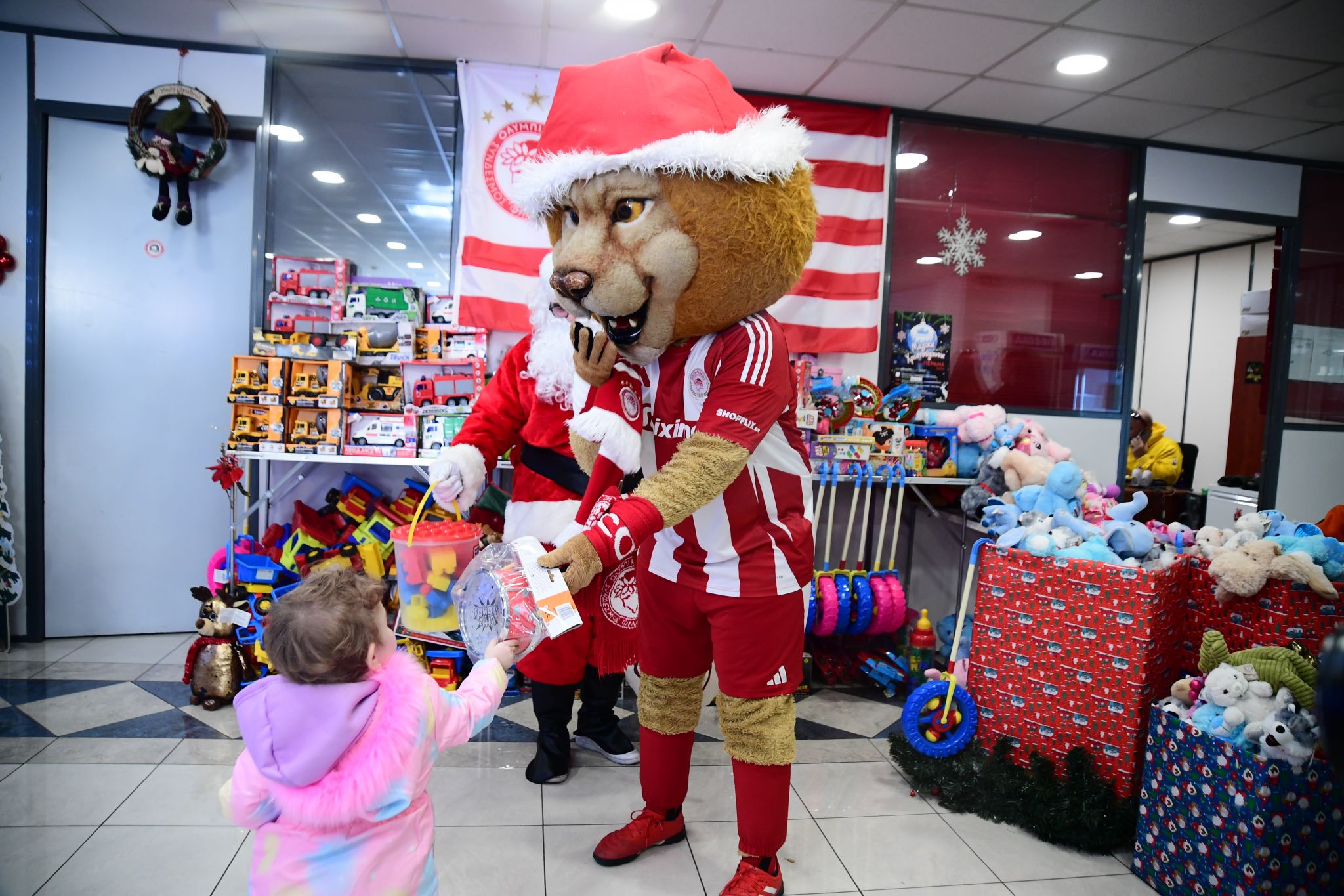 Στο κλίμα των εορτών των Χριστουγέννων ο Ολυμπιακός, έδειξε ξανά το κοινωνικό του πρόσωπο προσφέροντας 400 δώρα για τα παιδιά οικογενειών του Δήμου Περάματος. Σε εκδήλωση που πραγματοποιήθηκε τη Δευτέρα (16/12) στο Δημαρχείο του Περάματος, παρουσία του Προέδρου και Διευθύνοντα Συμβούλου του «Γ. Καραϊσκάκης», κ. Βασίλη Βασιλειάδη, ο Ολυμπιακός μοίρασε χαμόγελα και χαρά σε παιδιά ενόψει των Χριστουγέννων. Παρών ήταν ο Λεόνε, η μασκότ της ομάδας, που έφερε χαρά και ενθουσιασμό στα παιδάκια, καθώς τους μοίραζε τα δώρα.