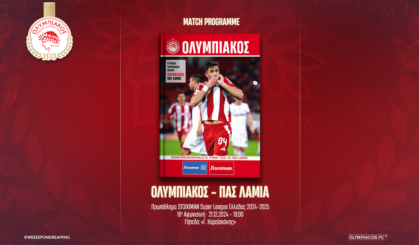 Διαβάστε το Match Programme της αναμέτρησης Ολυμπιακός – Λαμία για τη 16η αγωνιστική της Stoiximan Super League.