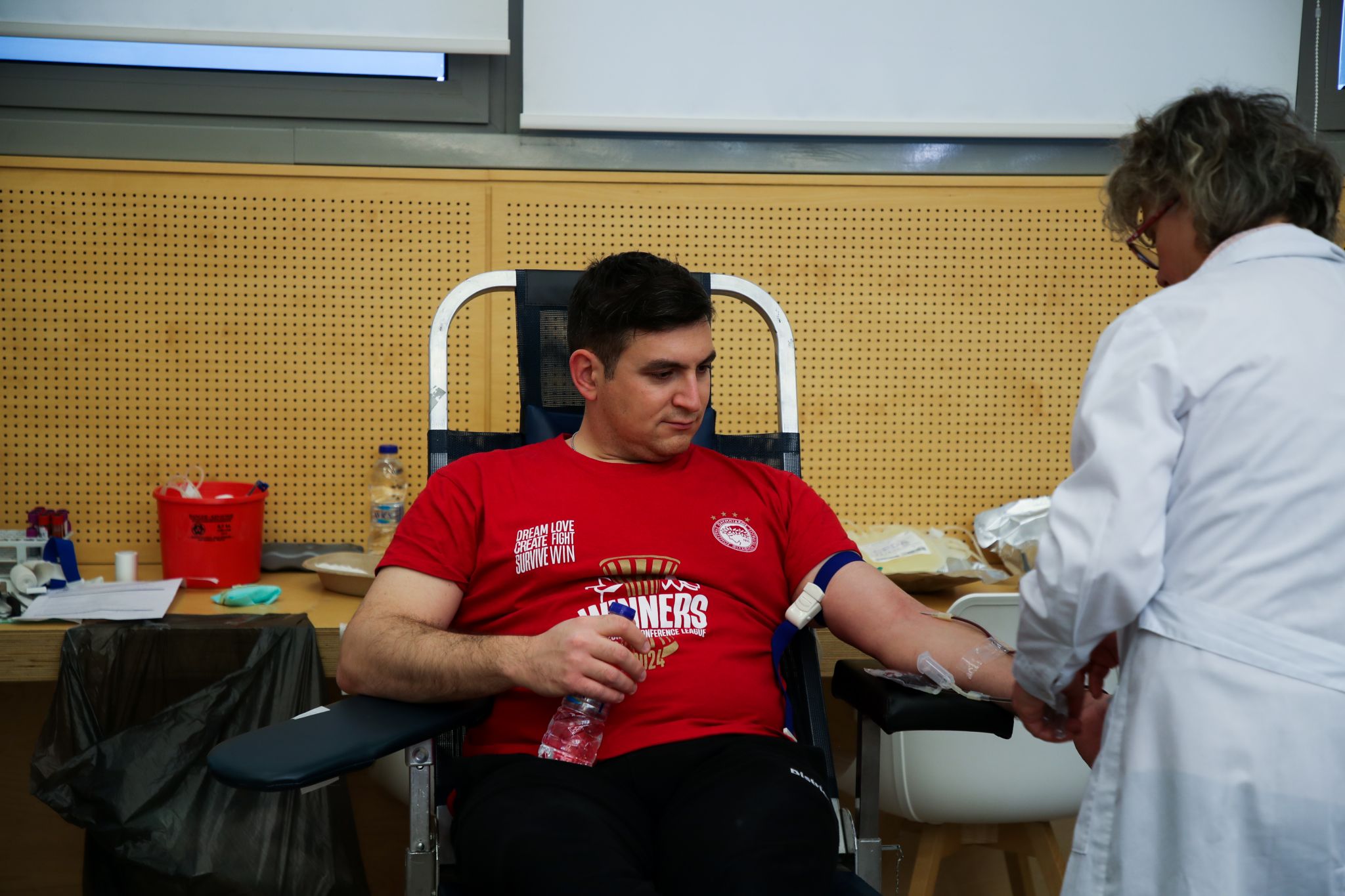 Στο πλαίσιο της εθελοντικής αιμοδοσίας μίλησε ο συντονιστής εθελοντικής αιμοδοσίας και υπεύθυνος διαχείρισης εισιτηρίων του Ολυμπιακού, Παναγιώτης Μπαντούνας, ο οποίος αναφέρθηκε στη μεγάλη συμμετοχή του λαού του Θρύλου, τονίζοντας: «Είναι πρωτοφανής η παρουσία των εθελοντών για τα δέκα λεπτά που χρειάζεται να δώσουν αίμα. Μάλιστα μία ημέρα πριν ανακοινώσαμε ότι δε θα μπορούσαμε να δεχτούμε άλλα ραντεβού. Φυσικά όλοι οι εθελοντές που επιθυμούν να δώσουν αίμα μπορούν να κατευθυνθούν στο νοσοκομείο Μεταξά, όπου έχουμε την τράπεζα αίματος του Ολυμπιακού όλα αυτά τα χρόνια και υπάρχει μία άψογη συνεργασία με το νοσοκομείο Μεταξά και το διοικητή του. Ευχαριστούμε θερμά τον κόσμο και μάλιστα αυτήν την ιδιαίτερη ημέρα για τον Ολυμπιακό, της επετείου της τραγικής στιγμής της ιστορίας μας, στα 100 μας χρόνια. Ένα μεγάλο ευχαριστώ για την τεράστια παρουσία όλων των εθελοντών αιμοδοτών».