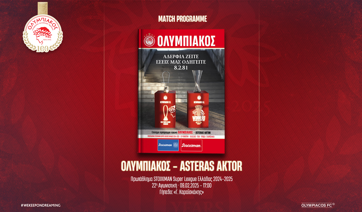 Το Match Programme του αγώνα Ολυμπιακός – Asteras AKTOR