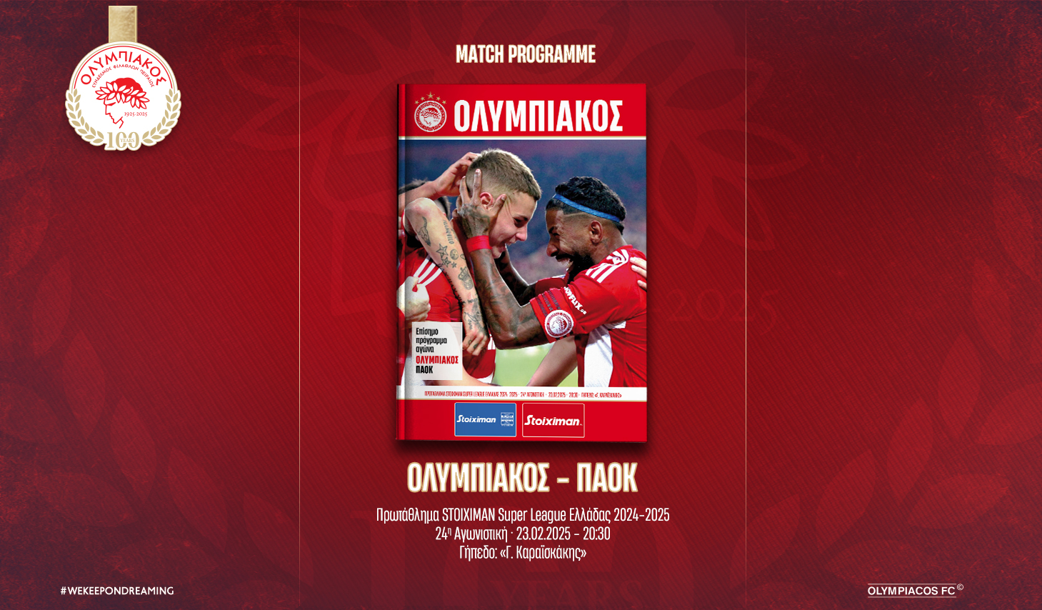 Διαβάστε το Match Programme της αναμέτρησης Ολυμπιακός – ΠΑΟΚ για την 24η αγωνιστική της Stoiximan Super League.