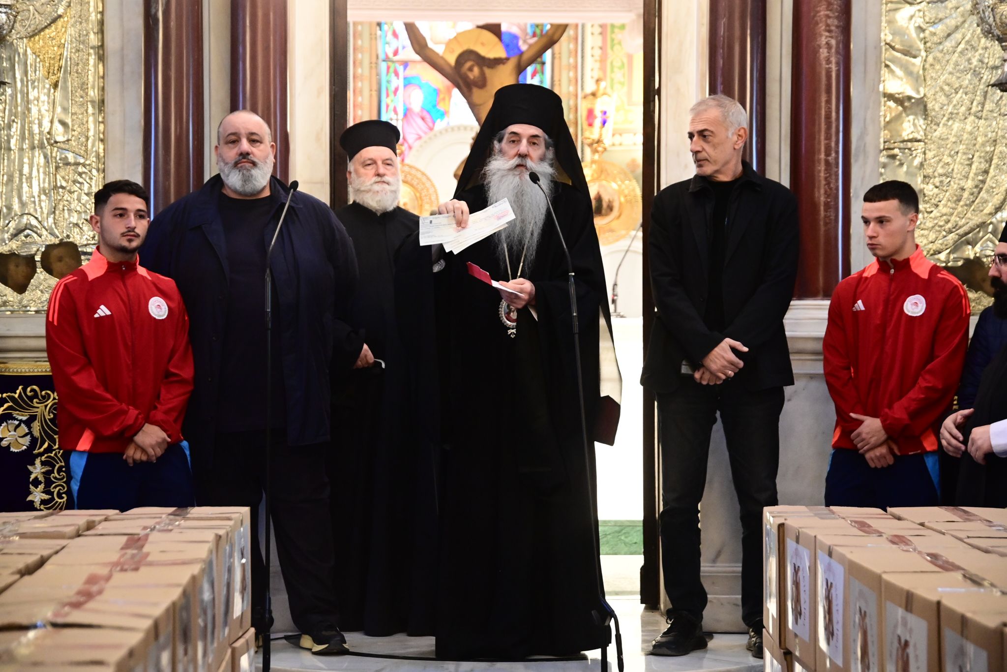 Παράλληλα, ο Γενικός Διευθυντής και αντιπρόεδρος της ΠΑΕ Ολυμπιακός, Κώστας Καραπαπάς, παρέδωσε στον Σεβασμιώτατο Μητροπολίτη Πειραιώς Σεραφείμ, επιταγές για την οικονομική ενίσχυση του κοινωνικού έργου της Μητρόπολης και την κάλυψη της μισθοδοσίας Ιεροδιακόνων της Μητροπόλεως.