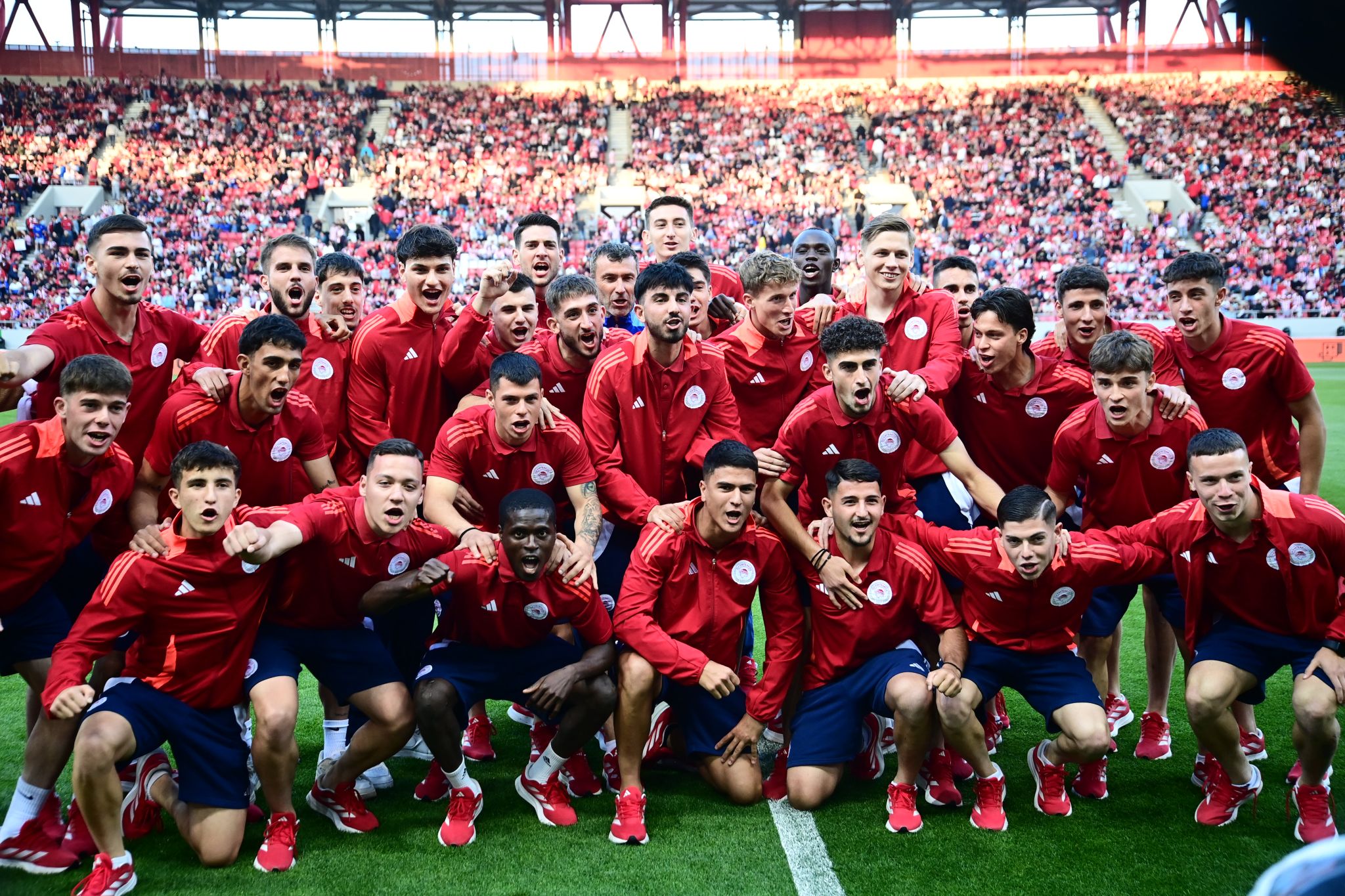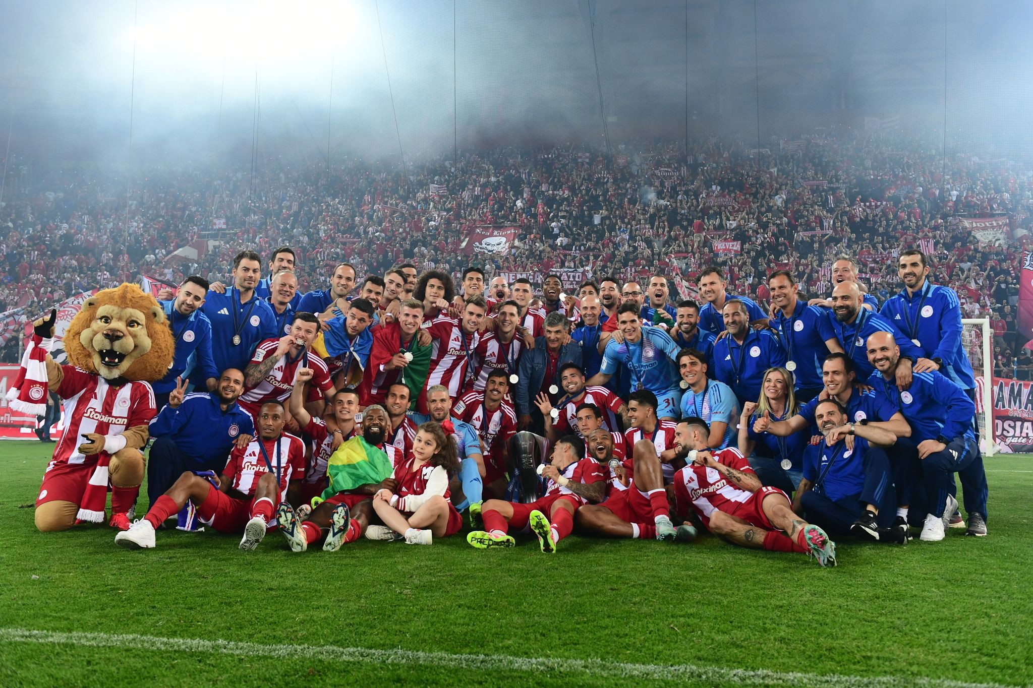 Όπως πάντα έτσι, και τώρα ο Ολυμπιακός φρόντισε στη γιορτή να έχει συμμετοχή και ο κόσμος του. Αυτός ο υπέροχος λαός που όλη τη σεζόν γέμισε το «Γ. Καραϊσκάκης» και βρέθηκε δίπλα στην ομάδα, βοηθώντας από την πλευρά του να πιάσει λιμάνι ο φετινός τίτλος.