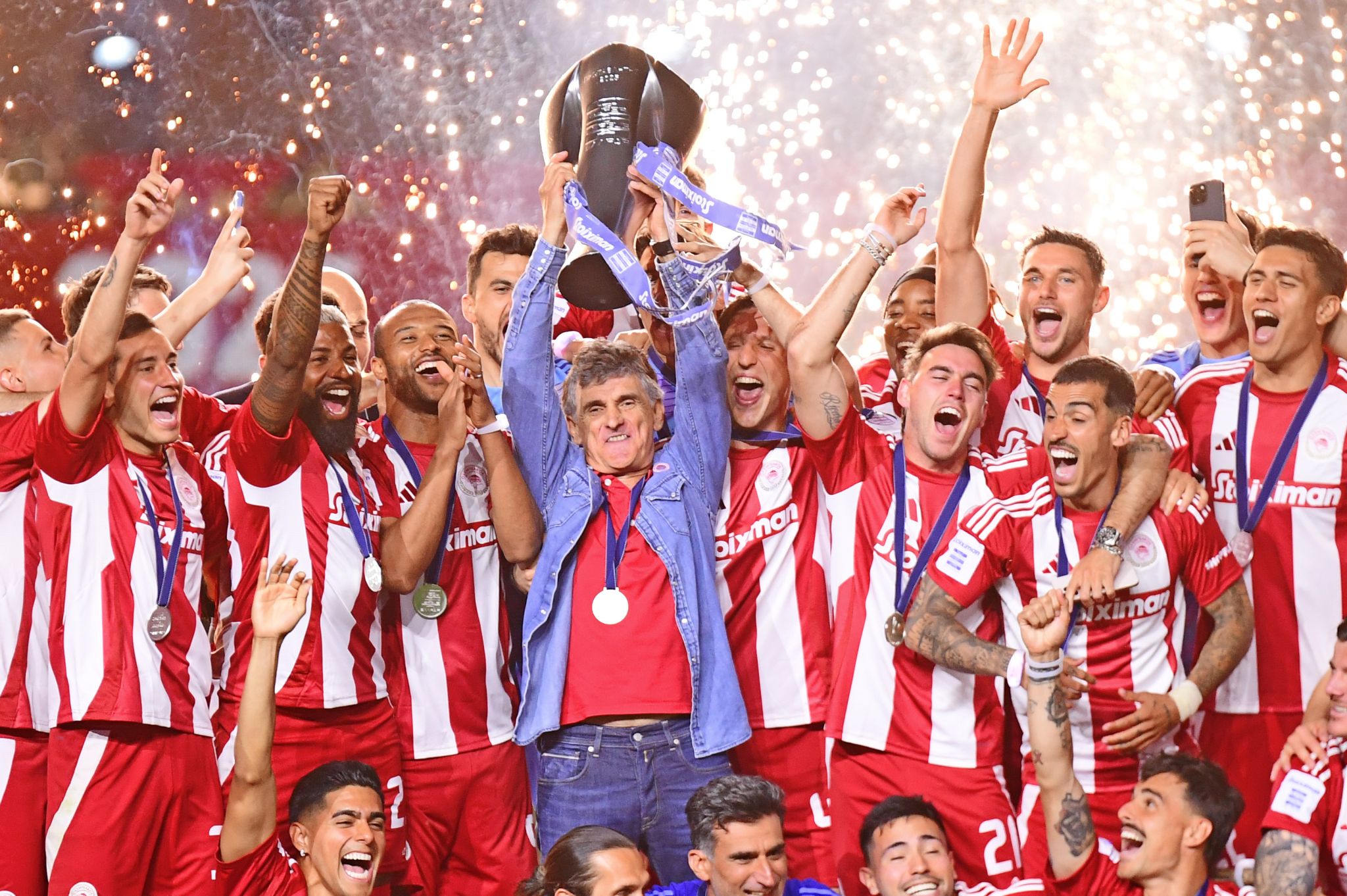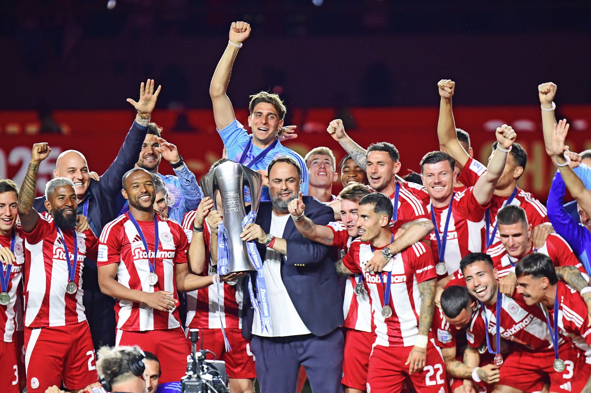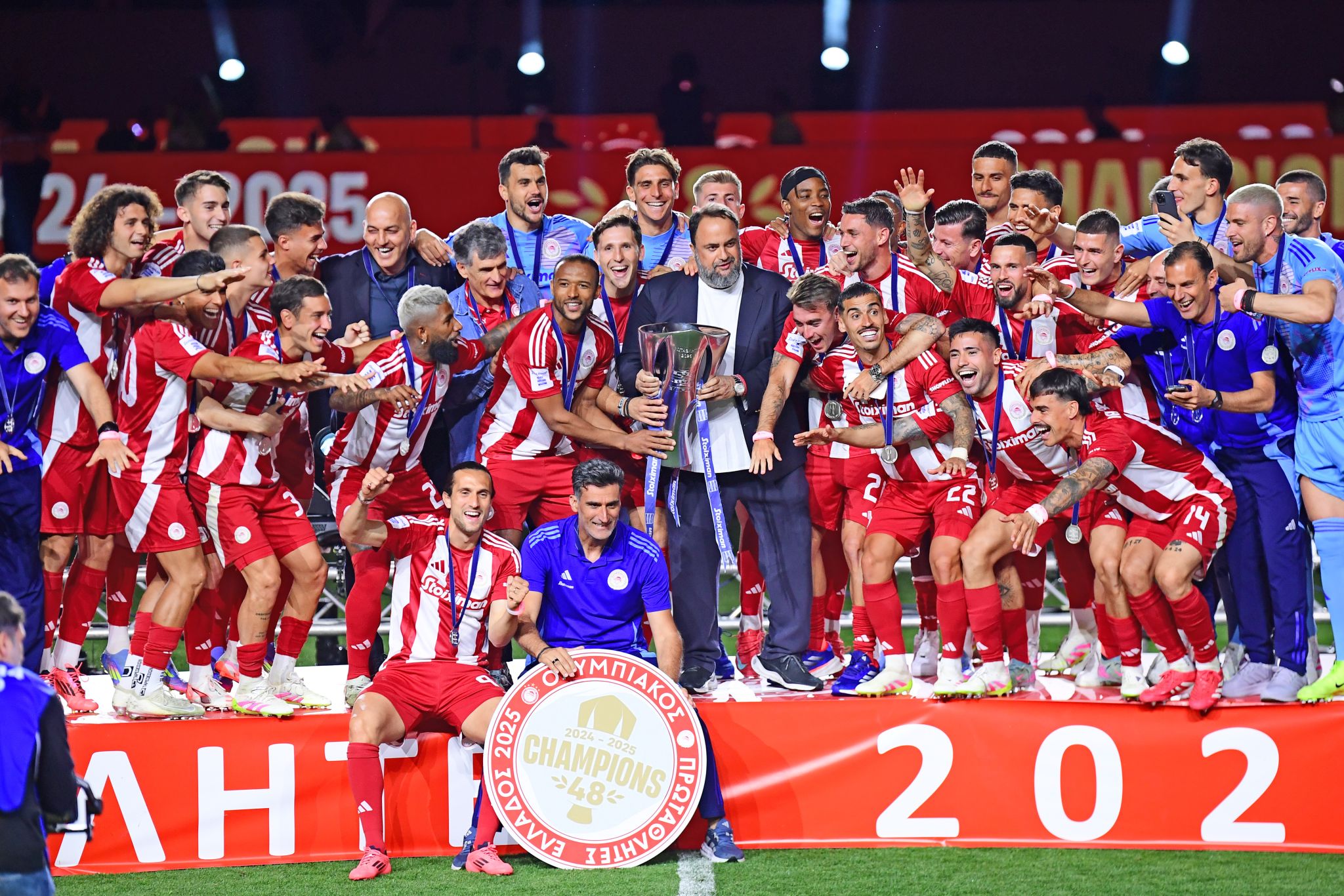 Στη σεζόν ορόσημο για τον Σύλλογο, που συμπληρώθηκαν τα 100 χρόνια ζωής από την ημέρα ίδρυσής του, ο Ολυμπιακός σήκωσε το 48ο πρωτάθλημα της ιστορίας του! Το βράδυ της Κυριακής (04/05) στο «Γ. Καραϊσκάκης» πραγματοποιήθηκε η απονομή του πρωταθλήματος στους «ερυθρόλευκους», για την αγωνιστική περίοδο 2024-2025. Ο Ολυμπιακός είχε κατακτήσει τον τίτλο και μαθηματικά από την εντός έδρας νίκη επί της ΑΕΚ, τέσσερις αγωνιστικές προτού ολοκληρωθεί η σεζόν της Stoiximan Super League και μετά από την αναμέτρηση με τον ΠΑΟΚ στο γήπεδο του Φαλήρου, έγινε η απονομή του πρωταθλήματος.