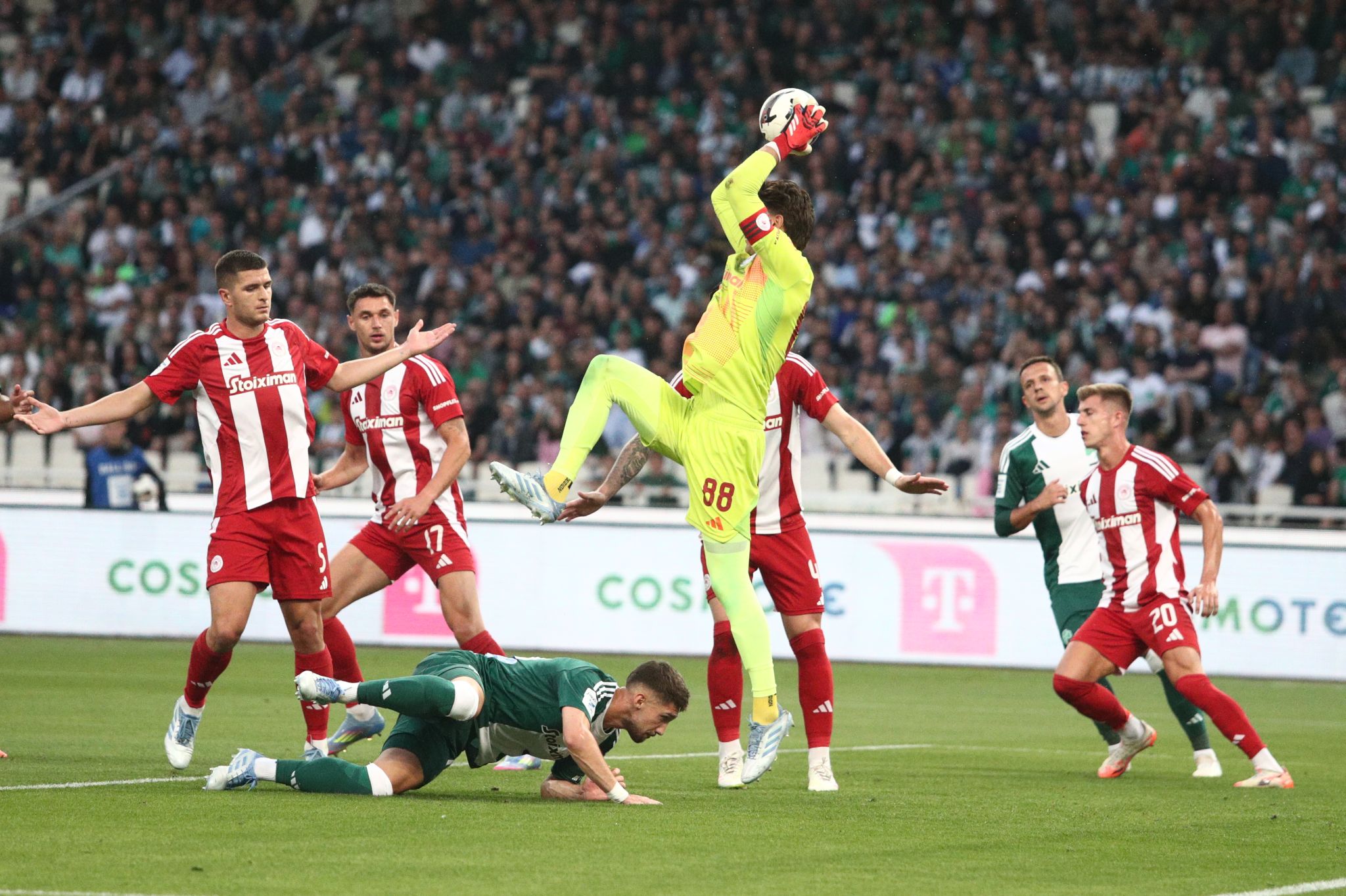 Οι πρωταθλητές Ελλάδας ήθελαν τη νίκη και απέναντι στον Παναθηναϊκό για να κλείσουν με τον καλύτερο τρόπο τη διαδικασία των Playoffs και το κατάφεραν. Στο 32′ οι γηπεδούχοι ήταν αυτοί οι οποίοι απείλησαν, όταν ο Σβιντέρσκι έκανε το σουτ έξω από την περιοχή με τον Τζολάκη όμως να μπλοκάρει σταθερά. Ένα λεπτό μετά, στο 32′, ο Γκαρθία δοκίμασε το μακρινό σουτ με τον Ντραγκόβσκι να αποκρούει και αμέσως ο Παναθηναϊκός βγήκε στην αντεπίθεση με τον Ουναΐ ο οποίος έκανε το σουτ έξω από την περιοχή και ο Τζολάκης αντέδρασε και πάλι σωστά διώχνοντας σε κόρνερ.