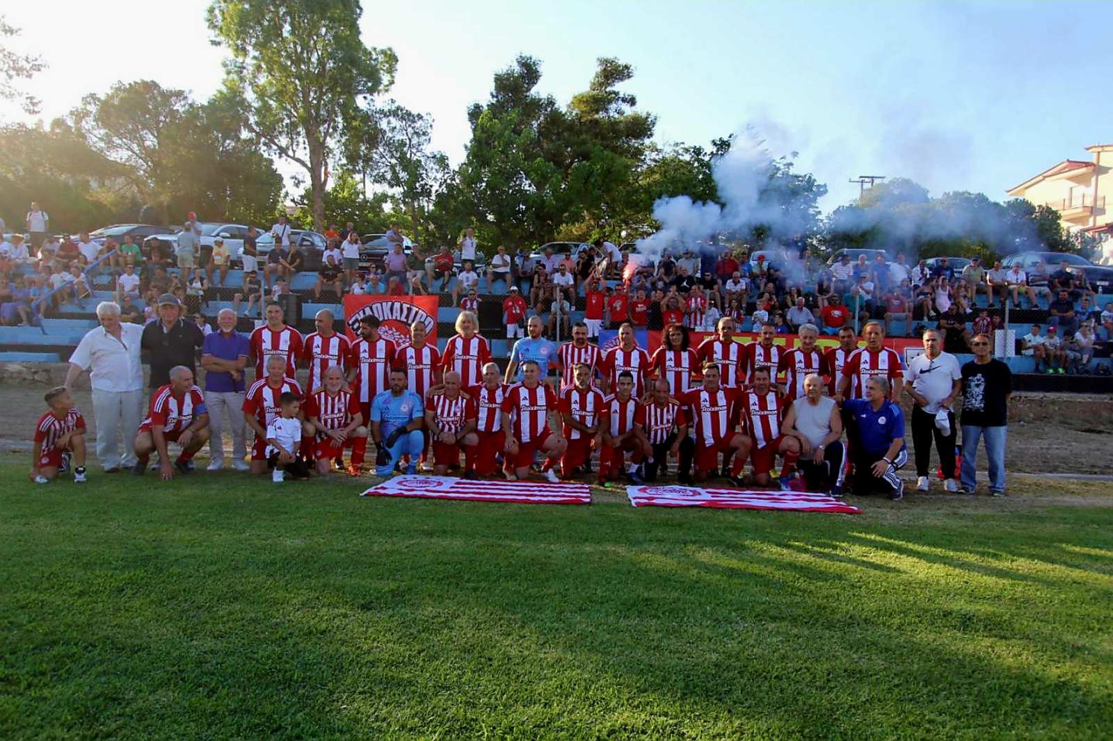 Οι Βετεράνοι του Θρύλου νίκησαν με 6-1, χάρη σε γκολ των Χαντζίδη (2), Γκόγκιτς, Καλύκα, Κοτίτσα και Βασιλειάδη, ενώ αγωνίστηκαν για τους «ερυθρόλευκους» οι Κατσιούλης, Καλαμάρας, Κωστούλας, Ζαραδούκας, Τσιαντάκης Παχατουρίδης, Κοτίτσας, Μπονόβας, Χαντζίδης, Γκόγκιτς, Καλύκας, Λουτσιάνο, Κασδοβασίλης, Γεωργουδάκης, Λύγκος, Χ. Καλύβας, Παπασωτηρίου, Αρζένης, Χ. Καλτσάς, Βενάκης, Κ. Καλτσάς, Γλύκας, Κωττάκης, Βασιλειάδης, Λίνος. Στην αποστολή συμμετείχαν επίσης οι Γκαϊτατζής, Αγγελής, Κελεσίδης, Βαΐτσης, Μαριόλης, Ρηγούτσος, Κρεούζος, Τουλγέρογλου, Συμεωνίδης και ο Γιώργος Πλέσσας από το Γραφείο Τύπου της ΠΑΕ Ολυμπιακός.