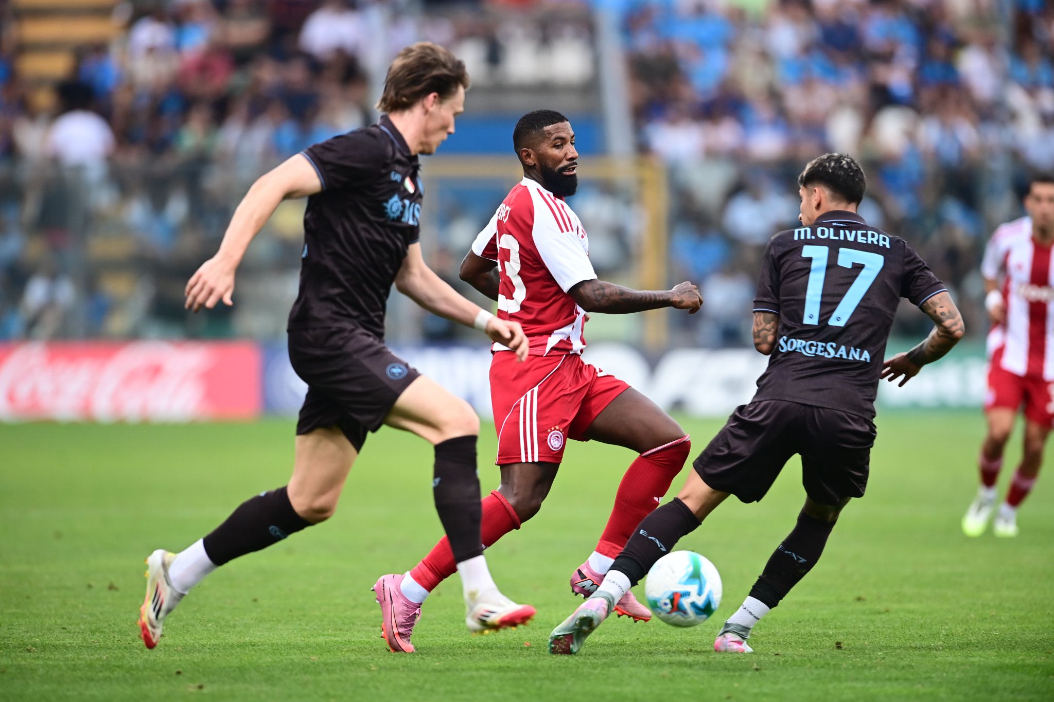 Οι «ερυθρόλευκοι» είχαν μία ακόμη καλή στιγμή στο 41′, όταν μετά από πίεση των Πειραιωτών ψηλά έκλεψαν την μπάλα, ο Ροντινέι έδωσε στον Ελ Κααμπί και ο Μαροκινός δοκίμασε το σουτ από το ύψος της μεγάλης περιοχής με τον Σάβιτς όμως να διώχνει σε κόρνερ. Στο δεύτερο ημίχρονο η Νάπολι σκόραρε στο 53′ για το 2-0 με το πλασέ του Λούκα, μετά από ασίστ του ΜακΤομινέι.