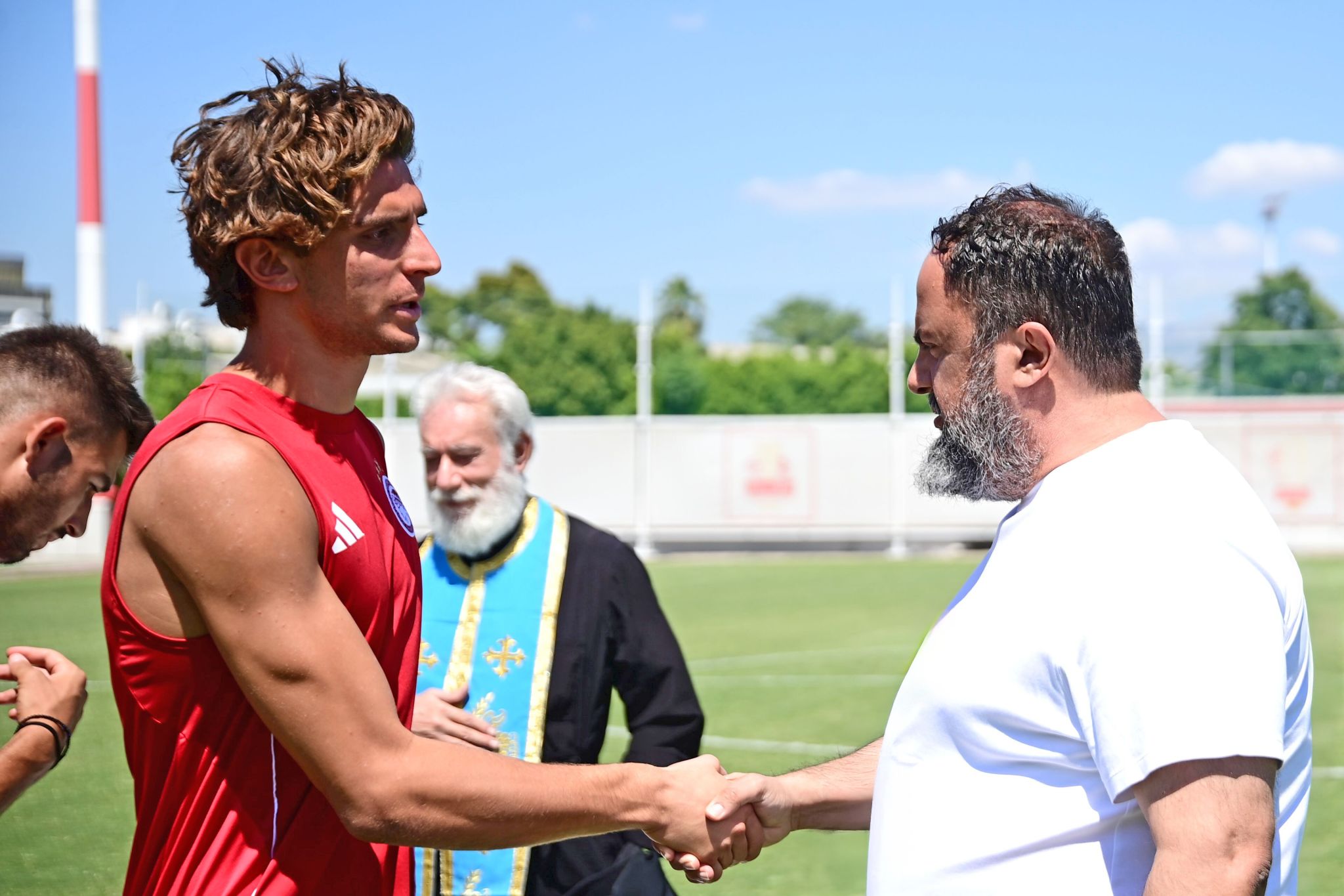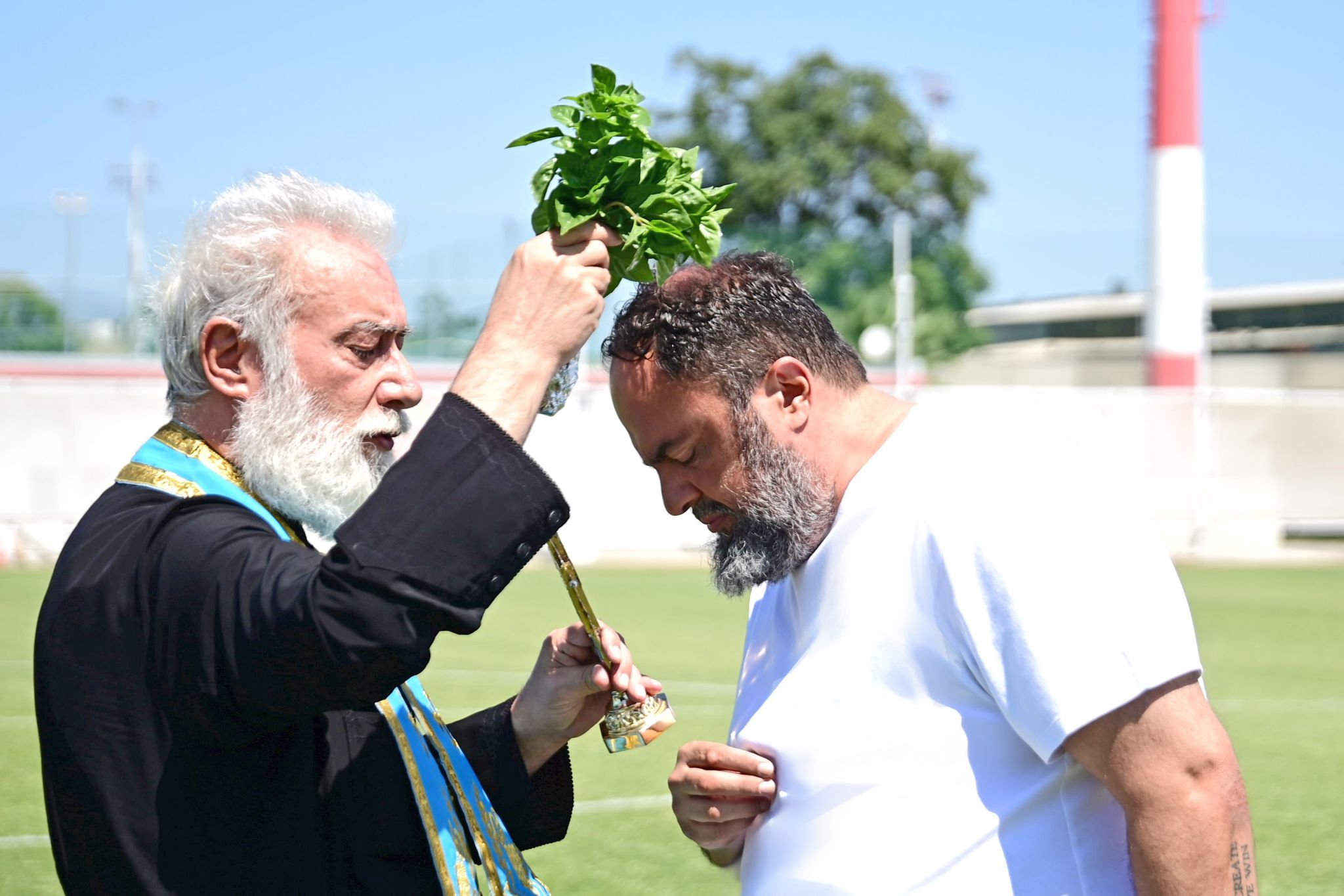 Ο πάτερ Δημήτριος καθαγίασε την ομάδα, τους ποδοσφαιριστές, τους προπονητές, το staff και τα στελέχη.
