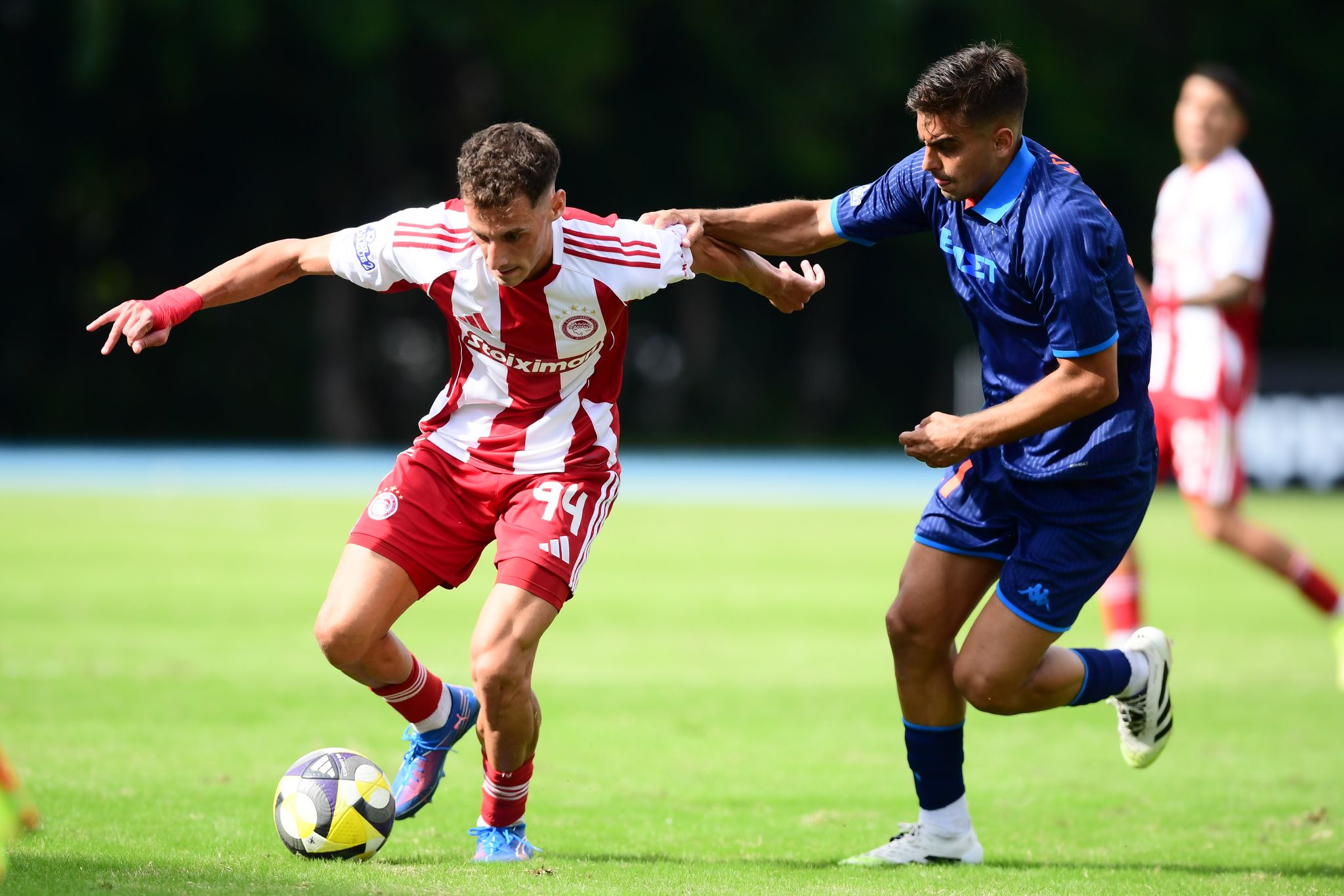 Ο Ολυμπιακός Κ23 πραγματοποίησε την καλύτερη μέχρι τώρα εμφάνισή του στο πρωτάθλημα. Από νωρίς στο ματς έδειχνε να έχει πάρει τον έλεγχο και στο 13′ ο Κεϊτά έκλεψε την μπάλα έξω από την περιοχή των γηπεδούχων, έκανε το σουτ αλλά ο τερματοφύλακας έδιωξε σε κόρνερ. Λίγο αργότερα, στο 16′, ο Ζουγλής μετά από ωραία προσπάθεια από αριστερά γύρισε την μπάλα στη μικρή περιοχή, ο Μπιλάλ πλάσαρε αλλά πήγε άουτ και στο 21′ απείλησε ο Βαλμπουενά με μακρινό σουτ, με τον γκολκίπερ να μπλοκάρει σταθερά.