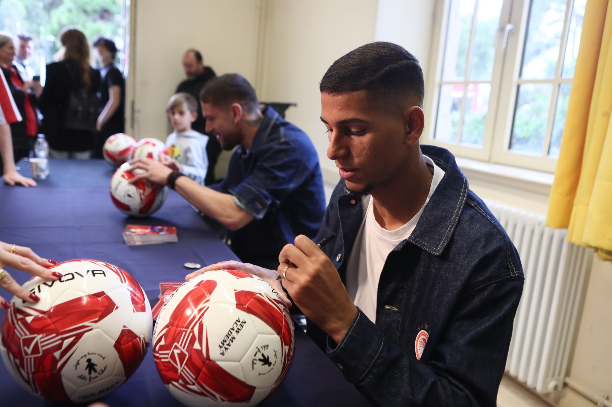 Στην ξεχωριστή αυτή εκδήλωση, η οποία διοργανώνεται κάθε χρόνο για τη συγκέντρωση πόρων για το ταμείο υποτροφιών του Κολλεγίου, ο διεθνής γκολκίπερ και ο Βραζιλιάνος κεντρικός αμυντικός της ομάδας μας έγιναν δεκτοί με ενθουσιασμό από τα παιδιά, στα οποία μοίρασαν αυτόγραφα, υπέγραψαν μπάλες και φωτογραφήθηκαν μαζί τους, σκορπώντας χαρά και χαμόγελα.