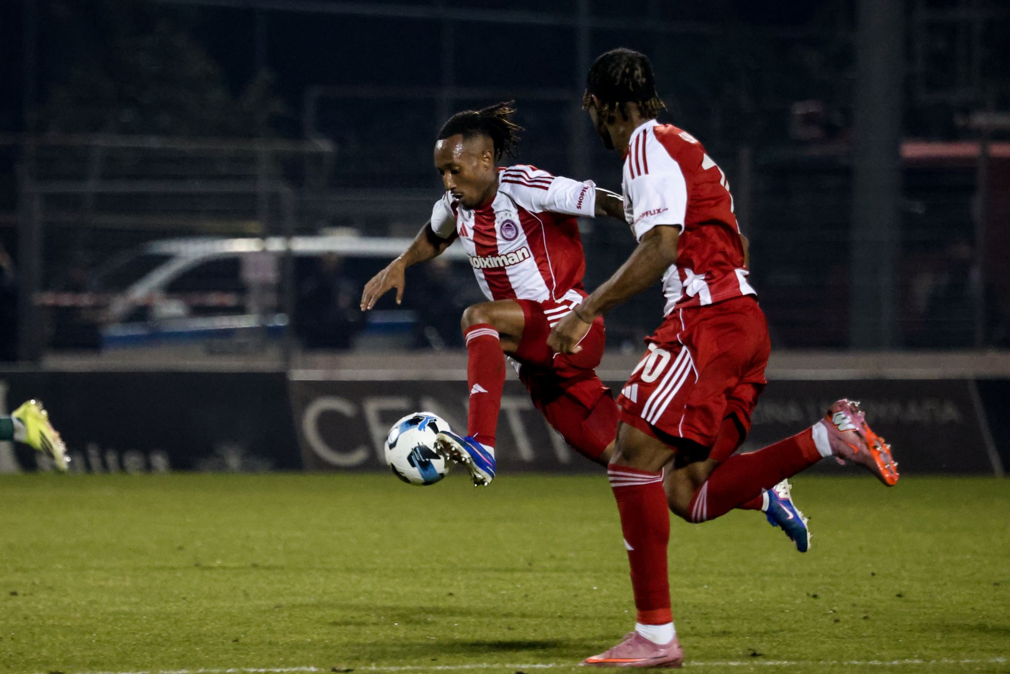 Στο 14′ ο Ολυμπιακός είχε την πρώτη του τελική, όταν ο Αντρέ Λουίς έκανε το σουτ έξω από την περιοχή, αλλά η μπάλα πήγε άουτ, ενώ την ίδια κατάληξη είχε το ανάποδο ψαλίδι του Έσε μέσα από την περιοχή στο 28′ μετά από σέντρα του Τσικίνιο. Ο Ελ Κααμπί απείλησε στο 31′ με σουτ έξω από την περιοχή, αλλά η μπάλα κόντραρε σε αμυντικό και πέρασε κόρνερ ελάχιστα δίπλα από την αντίπαλη εστία.