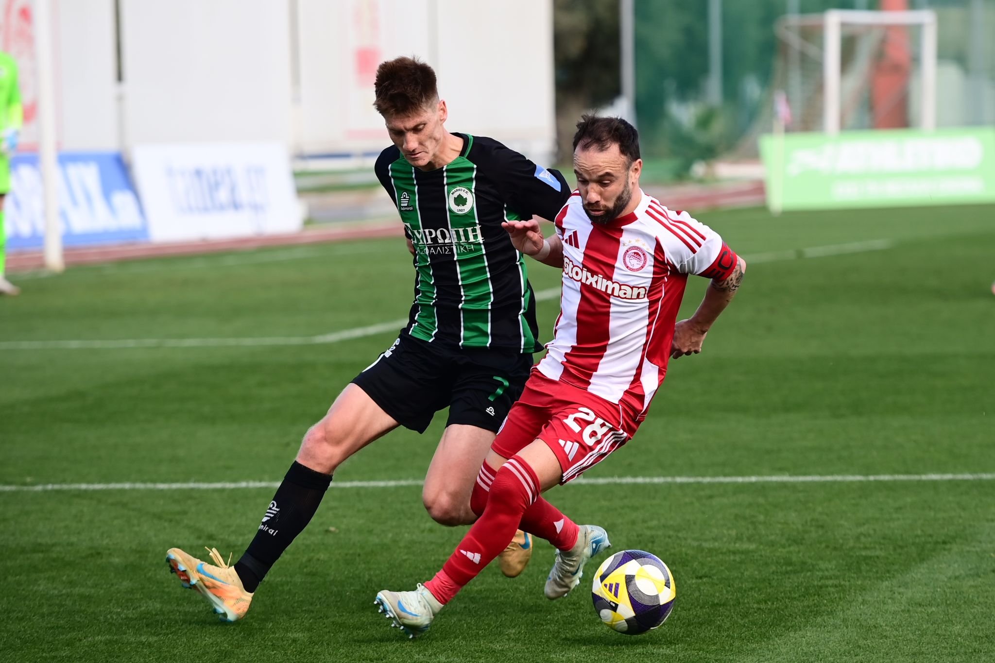 Η Μαρκό κατάφερε να προηγηθεί στον αγώνα στο 18ο λεπτό, όταν μετά από σέντρα από τ’ αριστερά ο Μιούλερ με πλασέ στην κίνηση μέσα από την περιοχή έκανε το 0-1. Ο Ολυμπιακός Κ23 στο 35′ είχε την καλύτερή του ευκαιρία στην αναμέτρηση, όταν ο Βαλμπουενά με απευθείας εκτέλεση φάουλ έστειλε την μπάλα στο οριζόντιο δοκάρι.