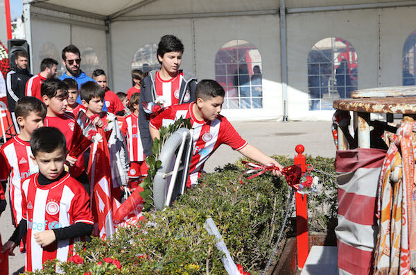Παρόντα στην επιμνημόσυνη δέηση ήταν όλα τα αγωνιστικά τμήματα του ΟΛΥΜΠΙΑΚΟΥ. Η ποδοσφαιρική ομάδα, με πρώτο τον Πρόεδρο της ΠΑΕ Ολυμπιακός, κ. Βαγγέλη Μαρινάκη. Ο Αντιπρόεδρος κ. Σάββας Θεοδωρίδης, ο Αντιπρόεδρος κ. Δημήτρης Αγραφιώτης, σύσσωμη η Διοίκηση της ΠΑΕ, όλη η ομάδα, ο κ. Μπέντο με το προπονητικό επιτελείο, ο Σύμβουλος Στρατηγικής της Διοίκησης, κ. Κριστιάν Καρεμπέ, άπαντες.