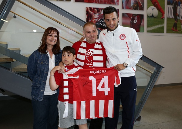 A unique experience both for him and his parents who escorted him in the KIA Training Ground of Toronto FC! It was there that the whole family met the players and the technical staff of the Legend! They met with Mr Michel, Christian Karembeu and Pierre Issa, whereas several players, such as Eric Abidal, Andreas Samaris (whom the young Grigoris adores!), Roberto, Giannis Maniatis, David Fuster and Dimitris Kolovos, took pictures with the young Grigoris, signed autographs for him and generously gave him unique moments!