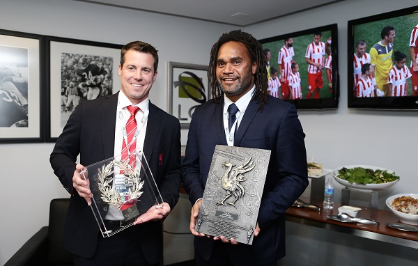 Christian Karembeu presented Liverpool’s officials with a plaque bearing the current date, the name of the stadium and a wreath of laurel leaves, a symbol of victory. Pierre Issa handed them a “red-and-white” jersey and received a honorary plaque by Mr. Billy Hogan.