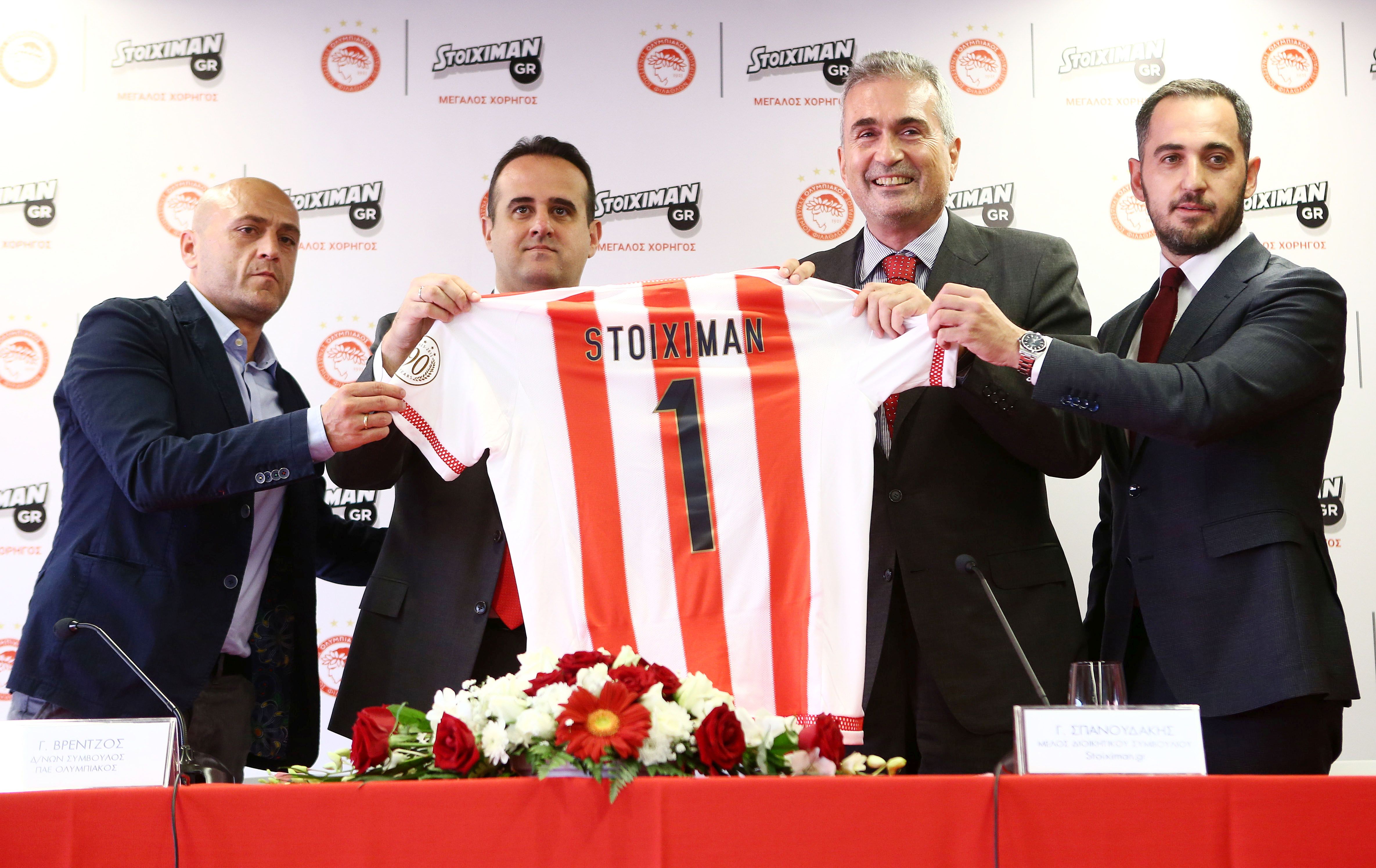 This partnership was presented today during a Press Conference held at V’ ammos in “Georgios Karaiskakis”, hosted by Mr Ioannis Vrentzos, Olympiacos FC CEO, Mr. Grigoris Georgatos, Olympiacos FC Sports Director, Mr. Ioannis Spanoudakis, Stoiximan.gr BoD member and Mr. Panos Konstantopoulos, Stoiximan.gr Marketing and Communications Director.
