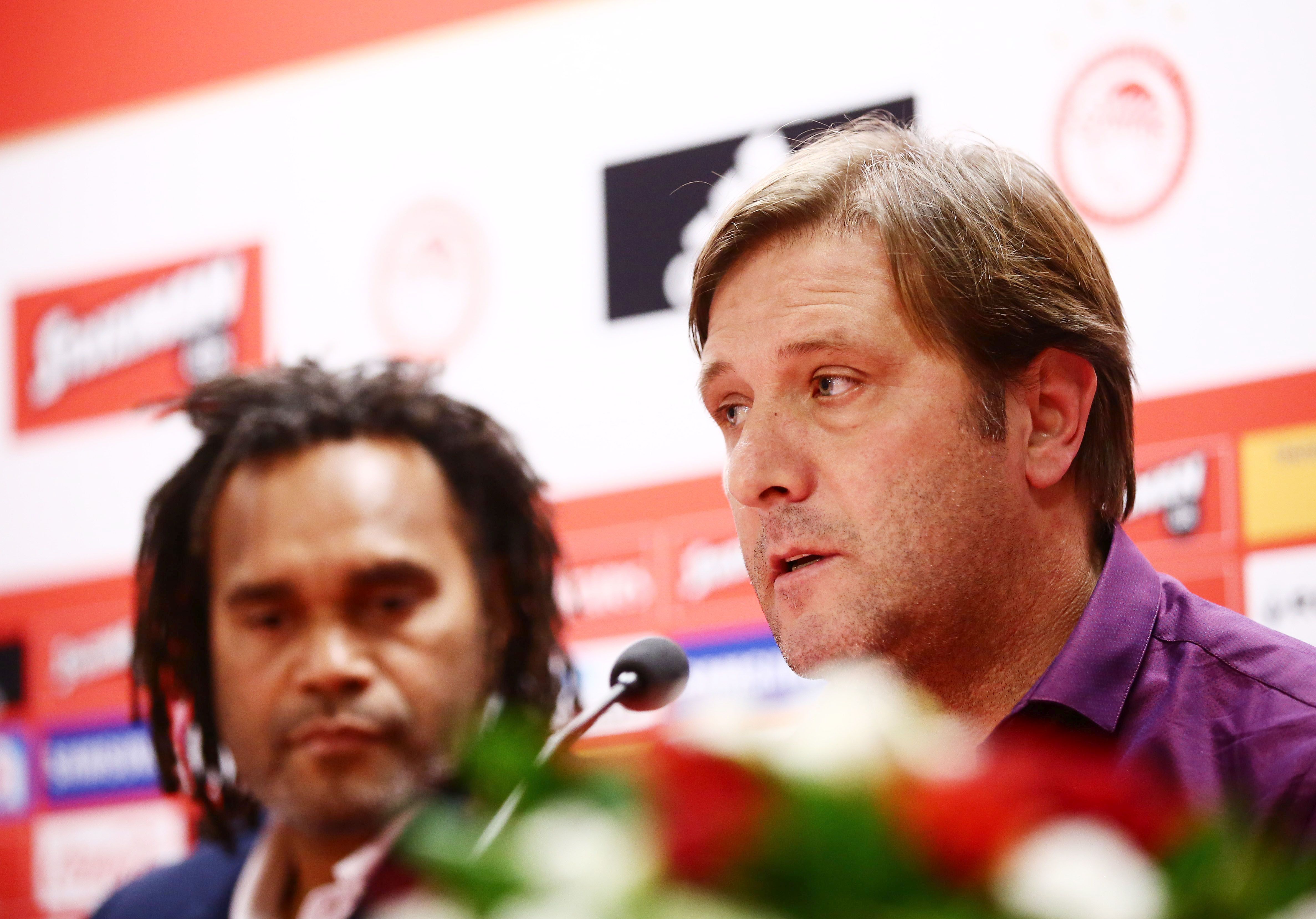 The panel consisted of Vice President Mr. Theodoridis, Strategic Advisor to the Administration Mr. Christian Karembeu, Olympiacos new coach Mr. Pedro Martins and, of course, our interpreter Mrs Marina Tsali. Olympiacos’ Communication Director Mr Kostas Karapapas welcomed all Press representatives, members of the Administration and everyone attending the Press Conference; the floor was given to Christian Karembeu, who stressed amongst others: “Mr Martins has successfully worked in major clubs. We hope he will manage to instill in us the things he has learned and helped him become one of Portugal’s top coaches”.